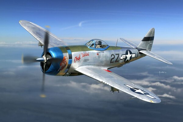 art sky plane ripablik the p-47 "thunderbolt" republic p-47 thunderbolt fighter-bomber attack ww2 picture1920 x 1386, 288 kB
