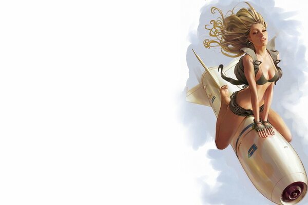 Gorgeous blonde sitting astride a rocket1680 x 1050, 128 kB