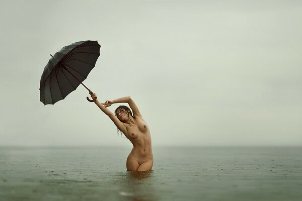 Slender girl hid from the rain under an umbrella naked1920 x 1280, 550 kB