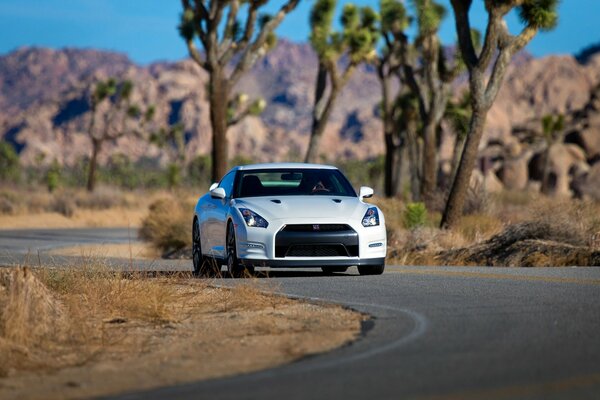 nissan gt-r white car vehicles front asphalt road1920 x 1200, 297 kB