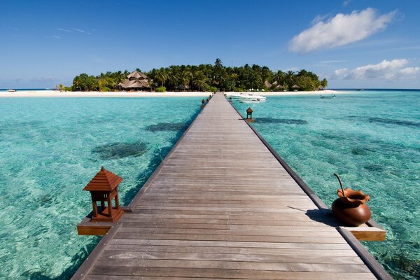 landscape nature bridge ocean water boat island beach palm sky boats shore palm trees 1920x12001920 x 1200, 497 kB