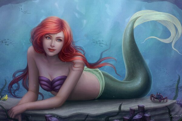 art zolaida ariel girl mermaid red ocean