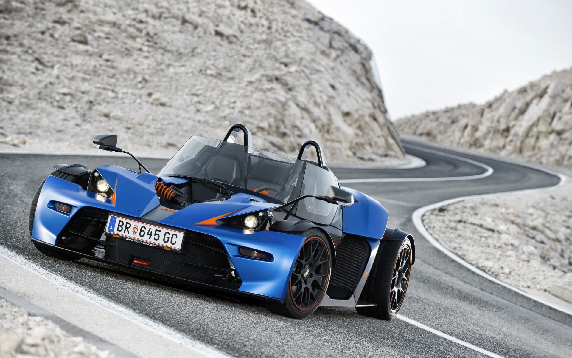 Blue fast sports car of 2013 on a steep road