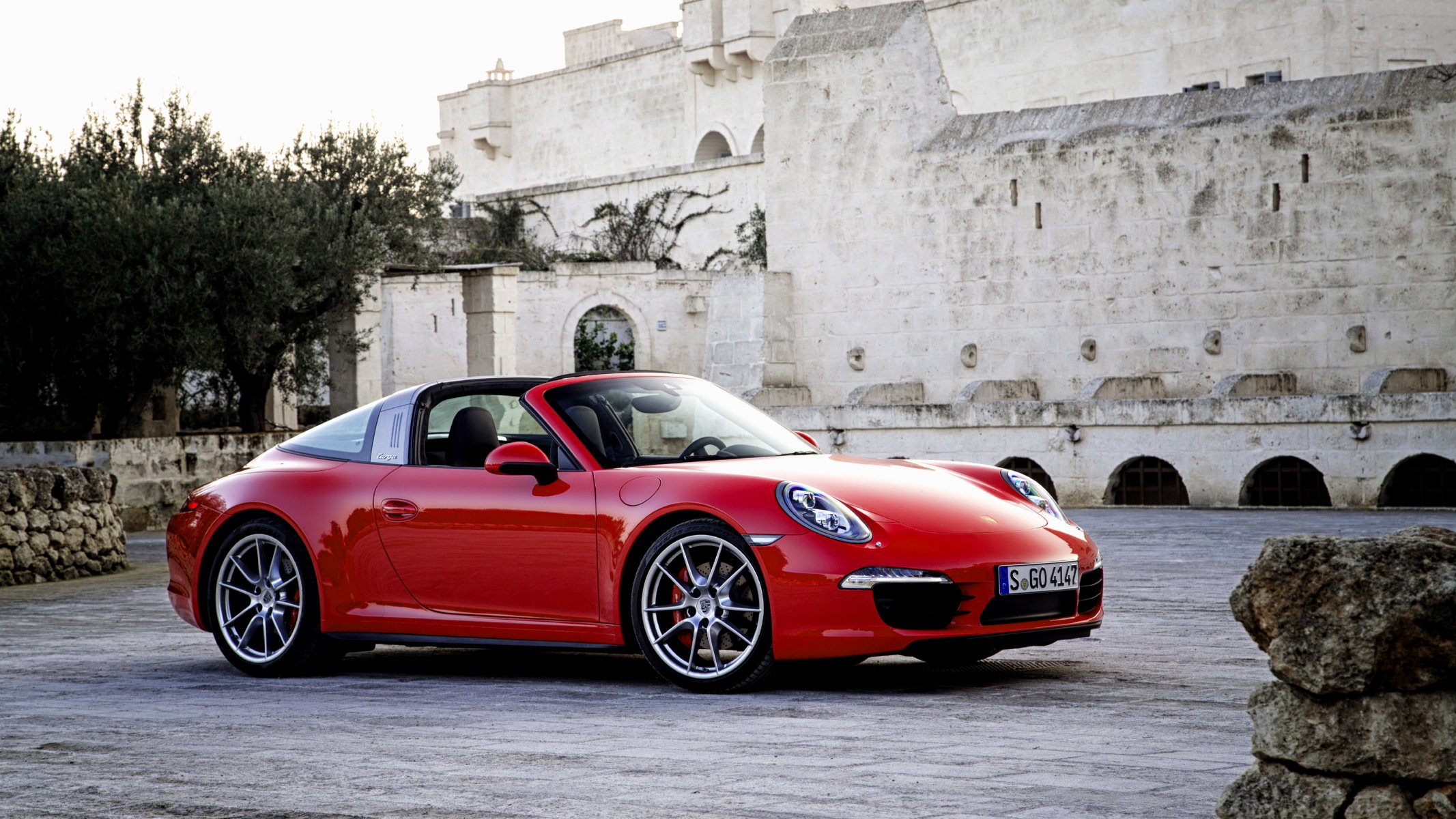 Bright red Porsche on a beautiful background