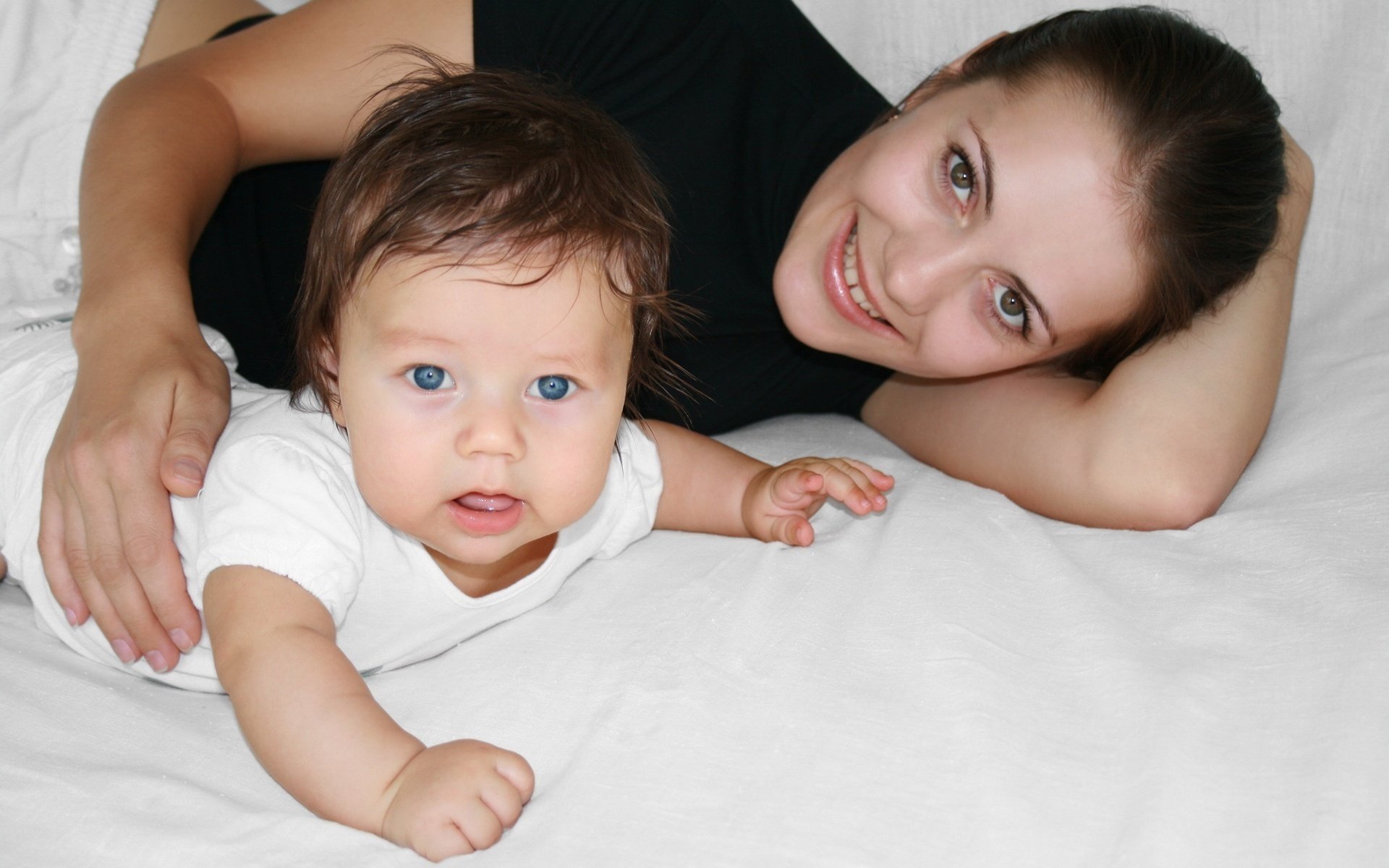 Image tags:mother and child, blue-eyed creation, together, look, smile, eyes, face, joy