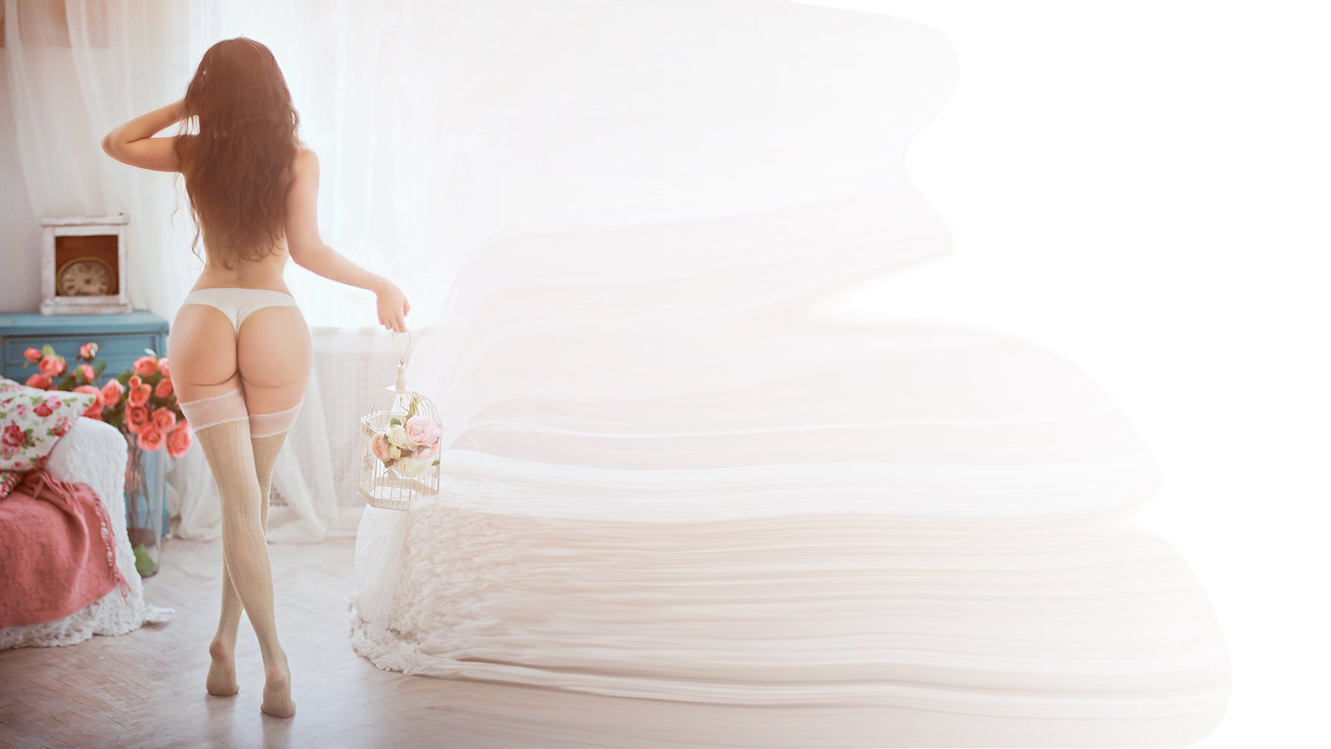 Image tags:flowers, girl, ass, stockings, long legs, pantie
