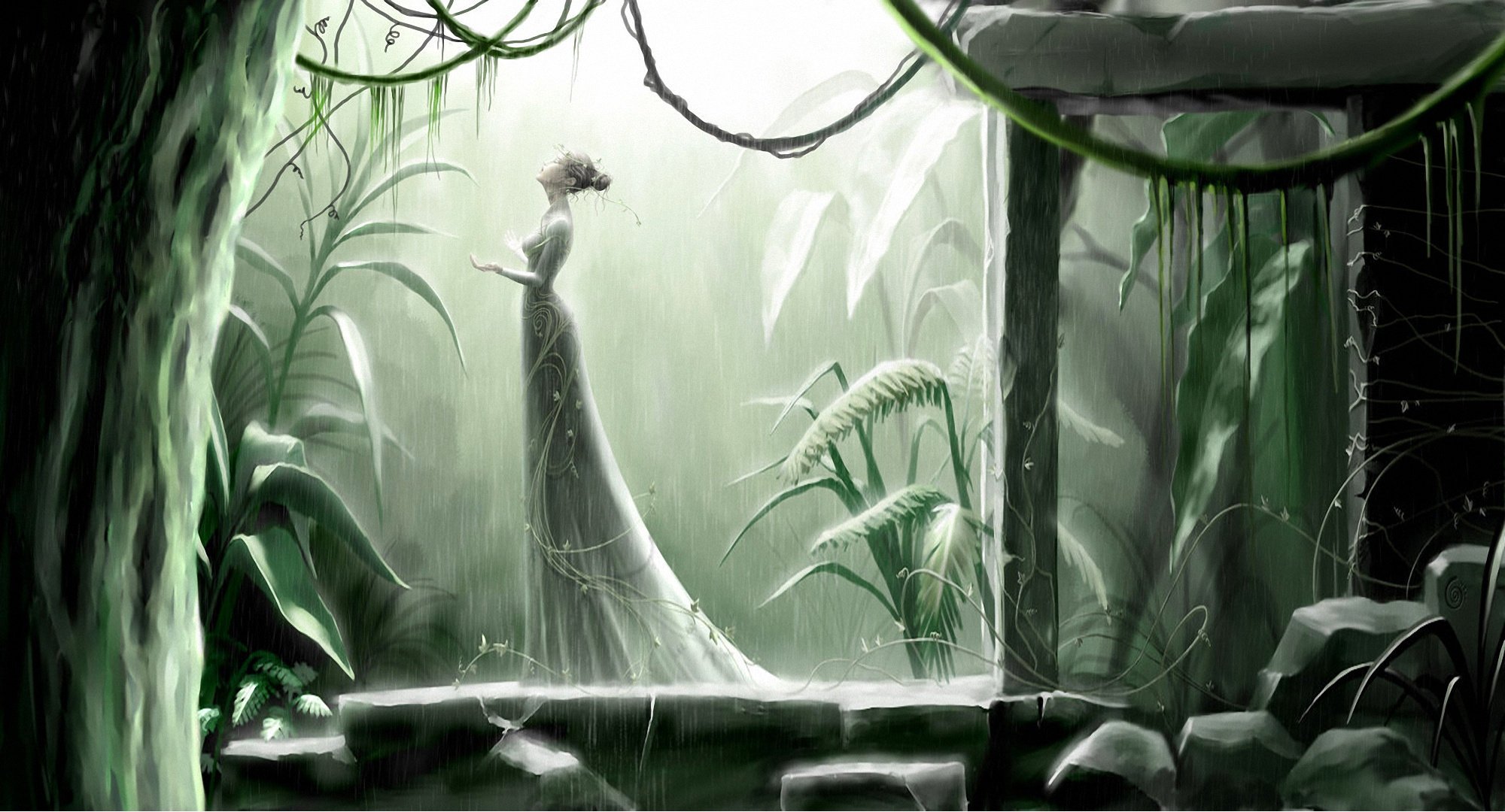 A girl's walk with a hairstyle in the rain