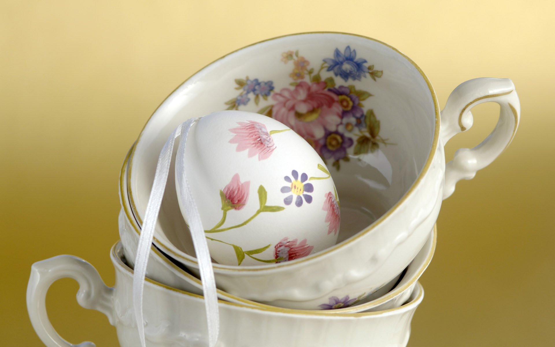 A painted egg in a porcelain mug