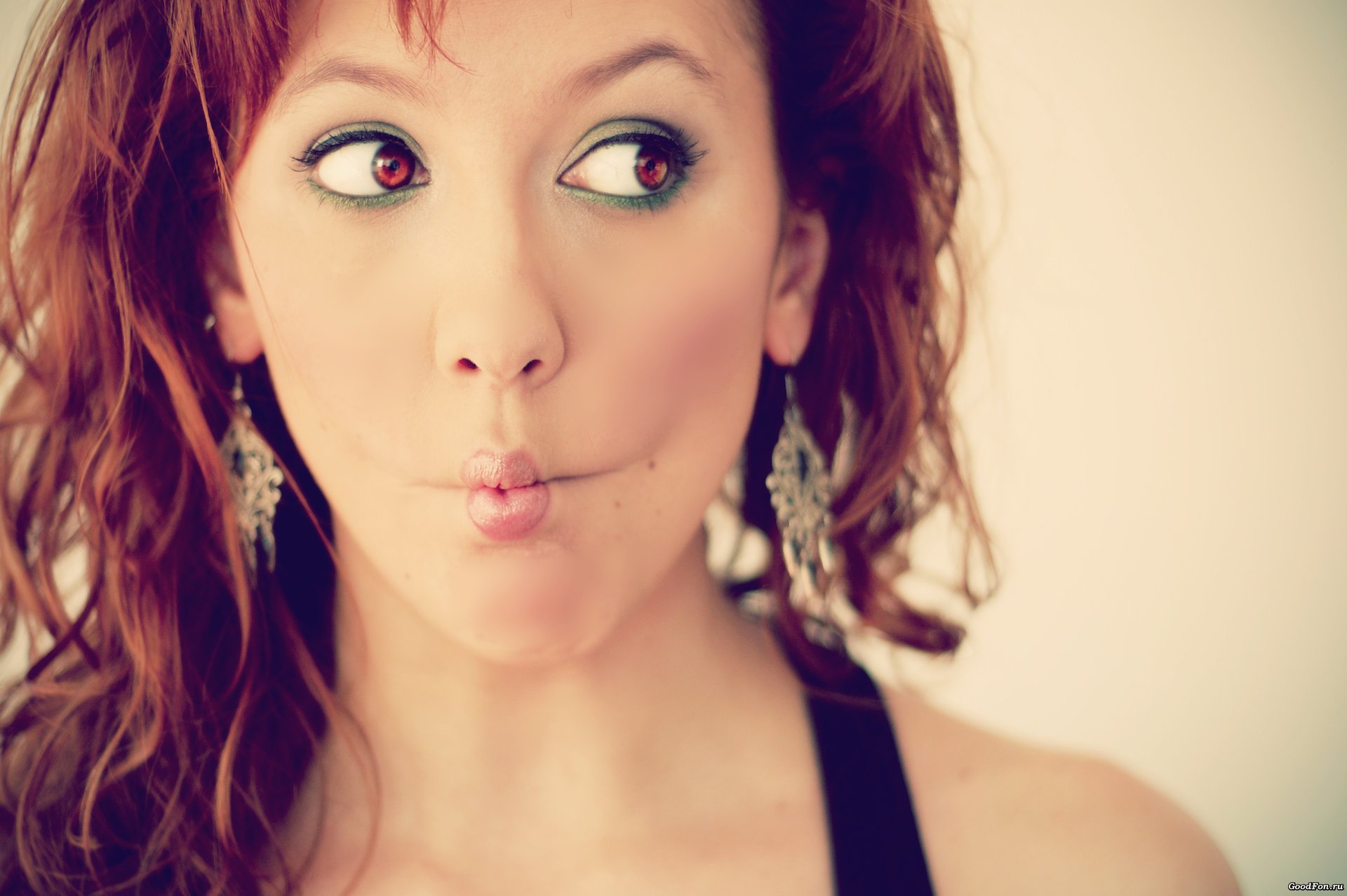Image tags:lips the fish, green shade, baggage, playful, the grimace, earrings, red eyes, girl, red, curls, hair, background, facial expressions, centerfolds, eyes, grimace, women, face