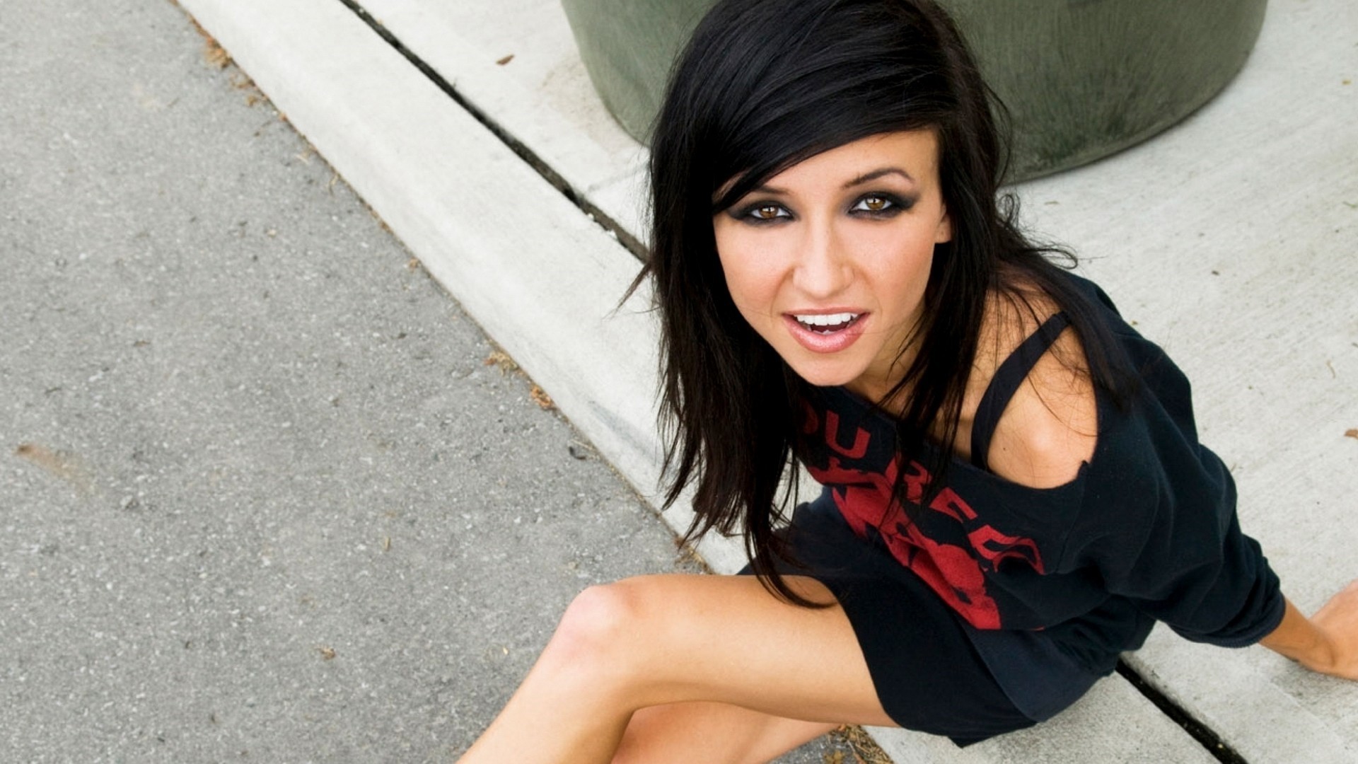 Brunette on a light gray background