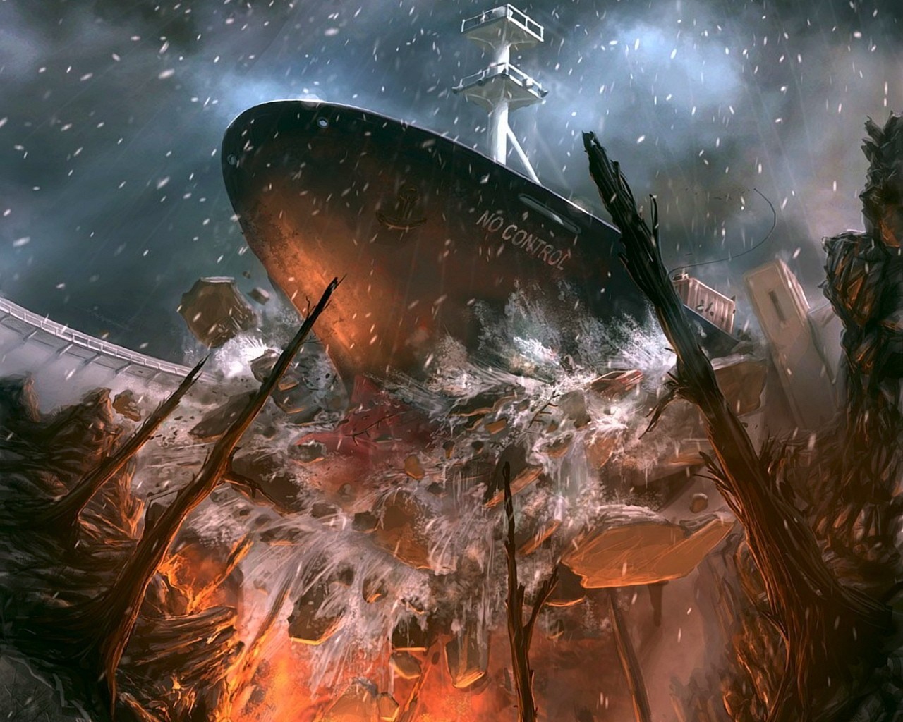 Disaster: the ship rammed the dam