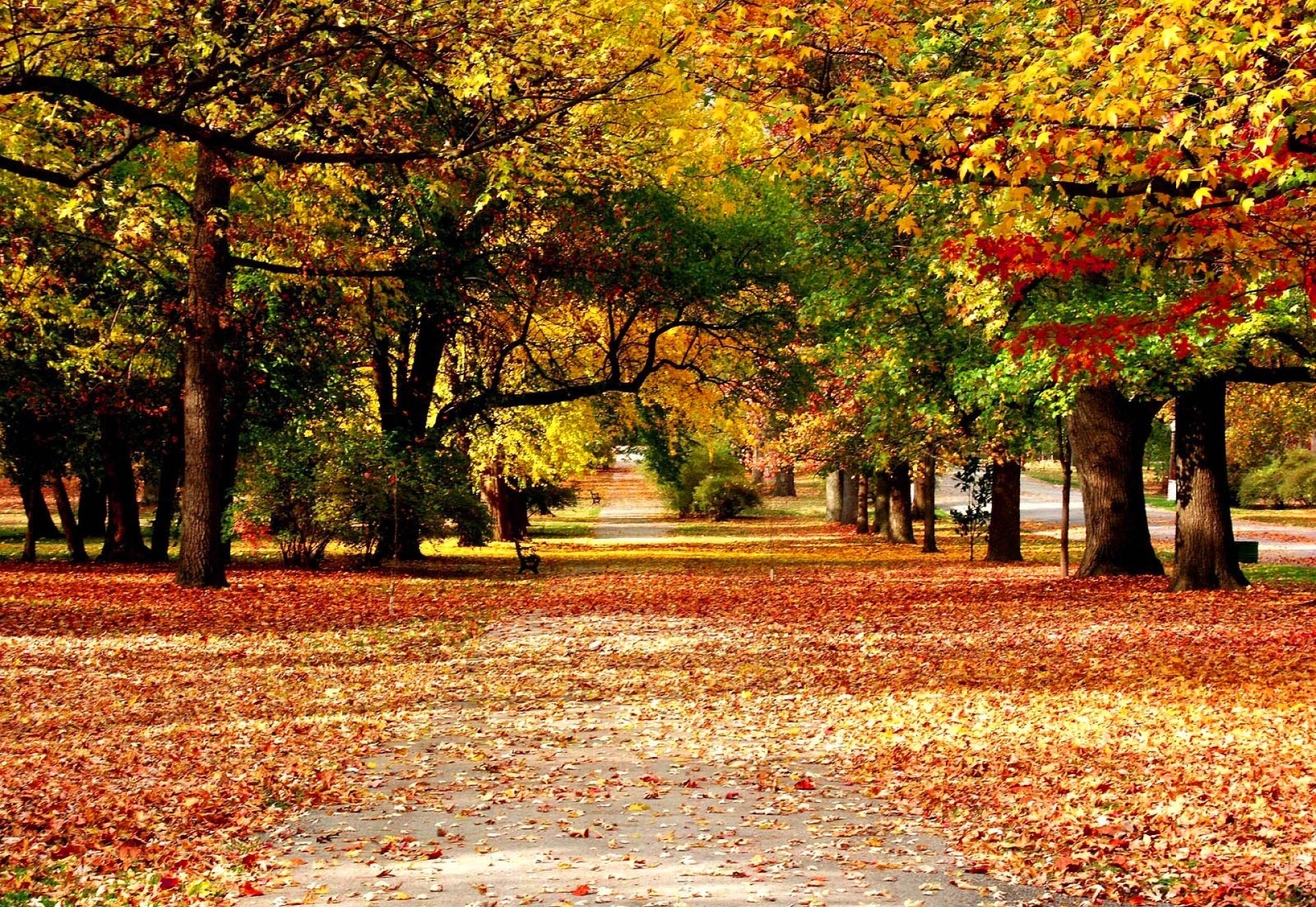 Alley in autumn with fallen leaves
