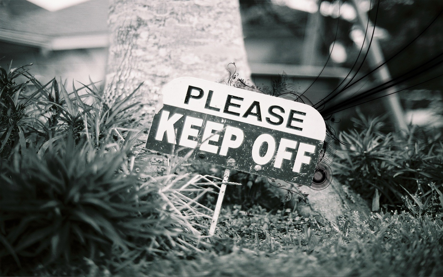 Image tags:anger, warning, inscription, plate, mark, foreground, style, grass