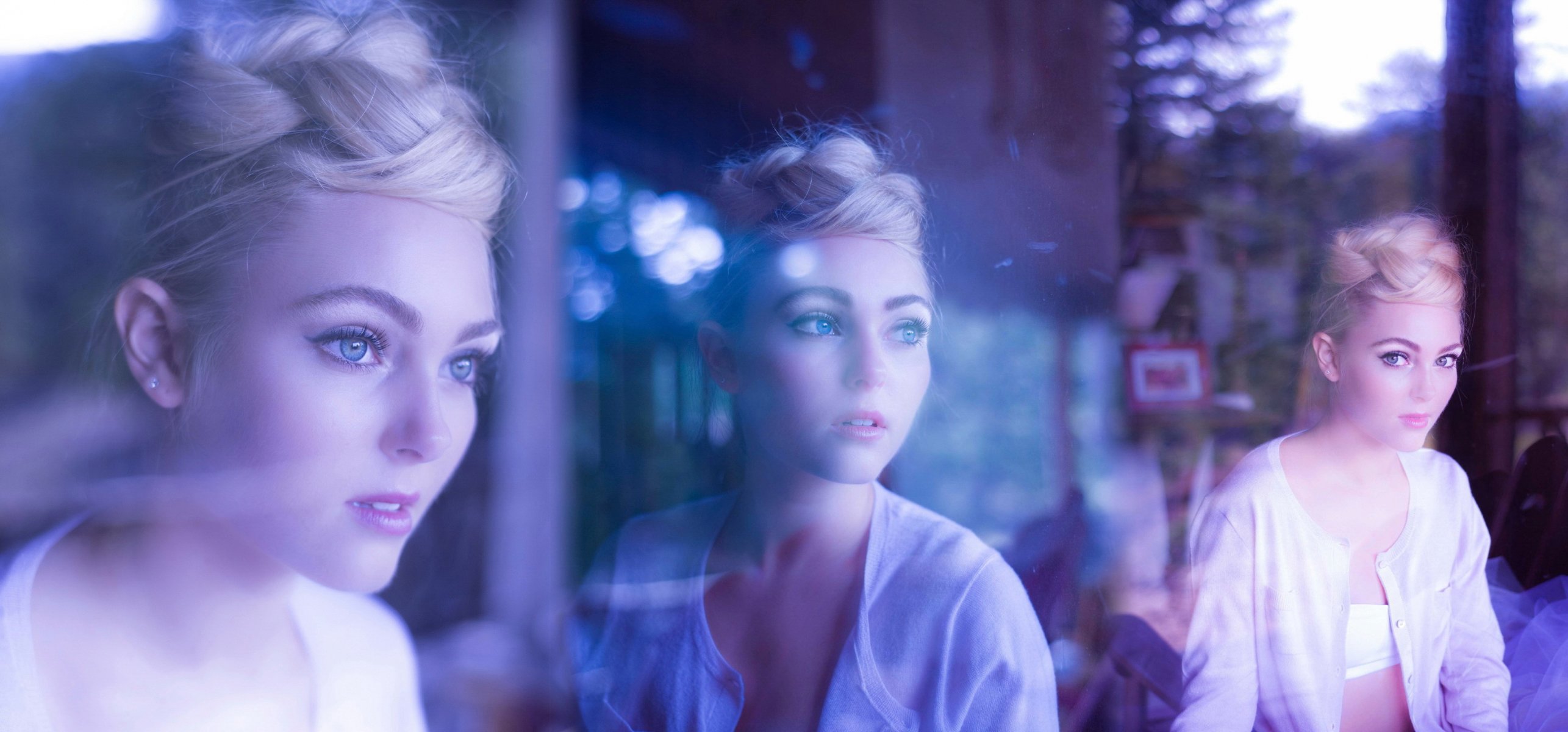 Beautiful blonde looks into the distance collage