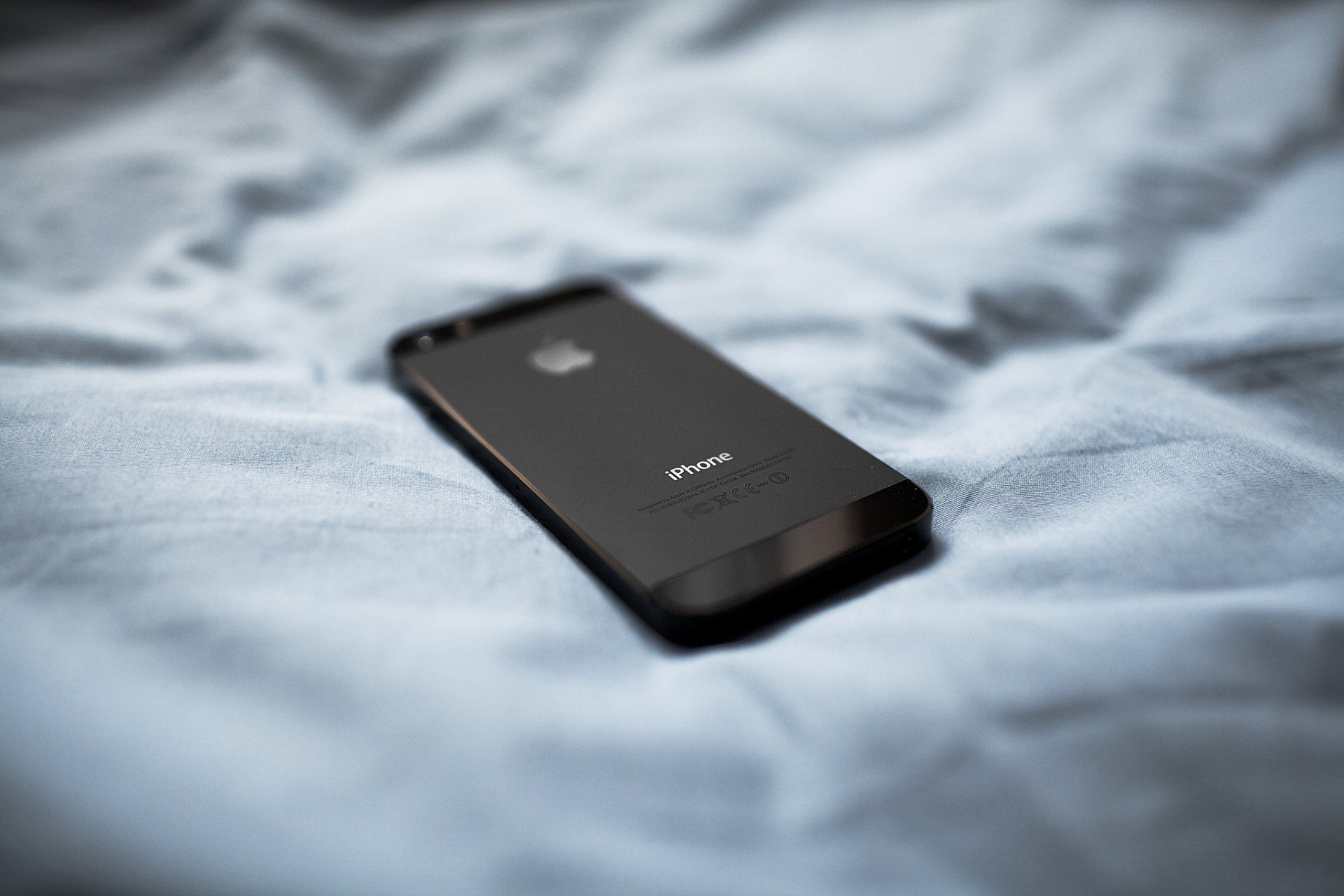 Black iPhone five on soft material