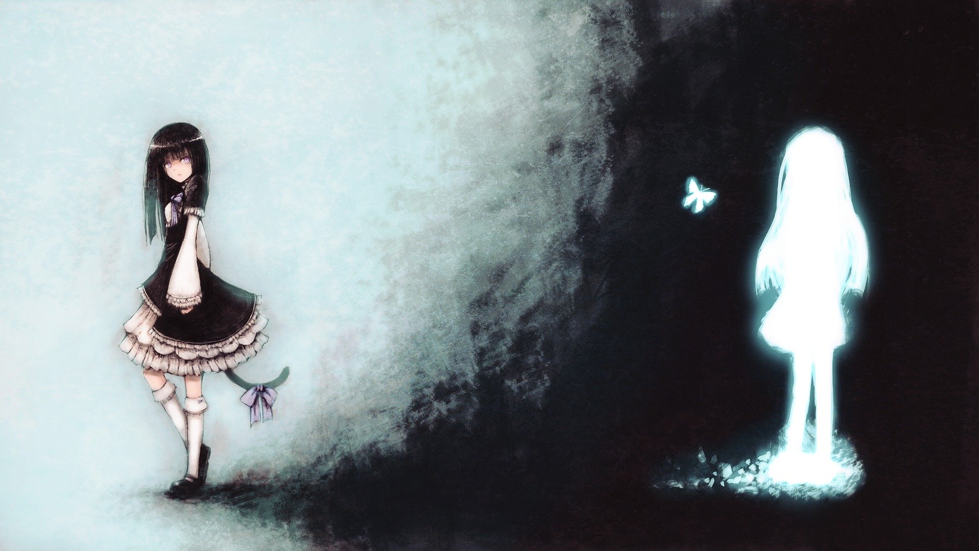 Image tags:art, blackball, anime, umineko no naku koro ni, when the cry of seagulls, frederica bernkastel, furudo erika, girls, butterfly, tail, bow