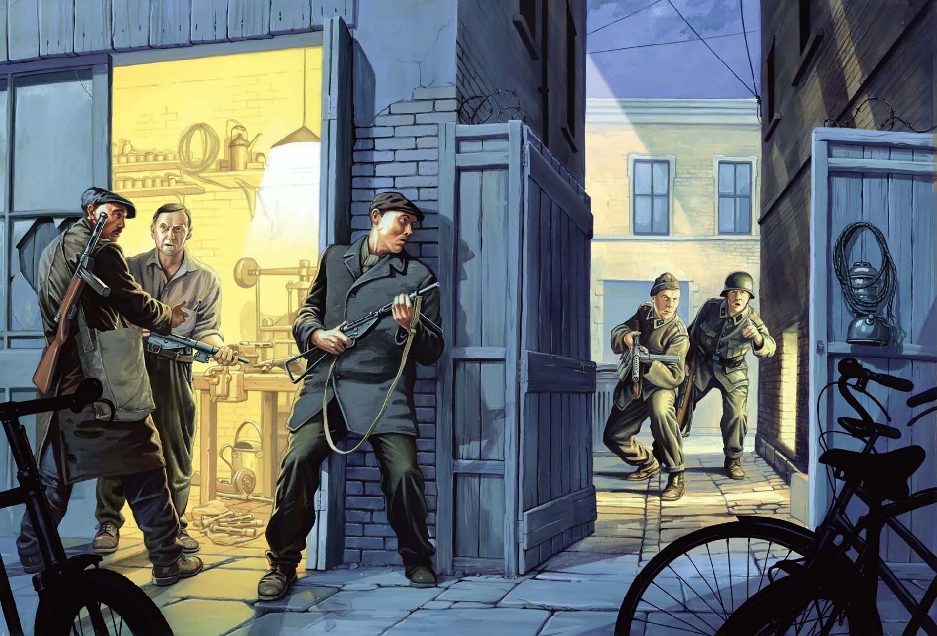 Image tags:art, french, resistance, fr., 1944, guerrillas, maquis, shop, german, patrol, ww2.