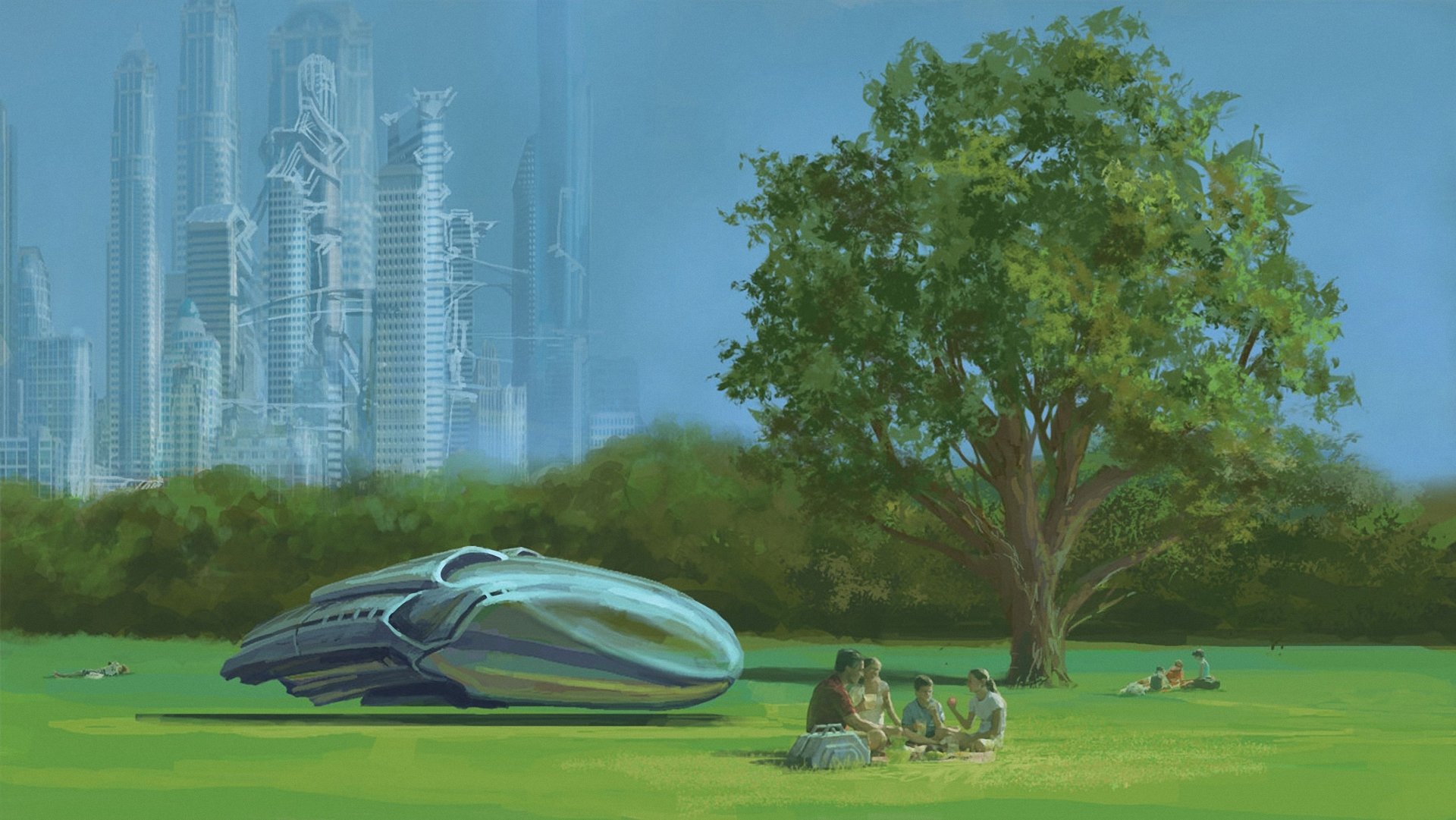 Image tags:art, future, metropolis, ship, transportation, family, picnic, tree