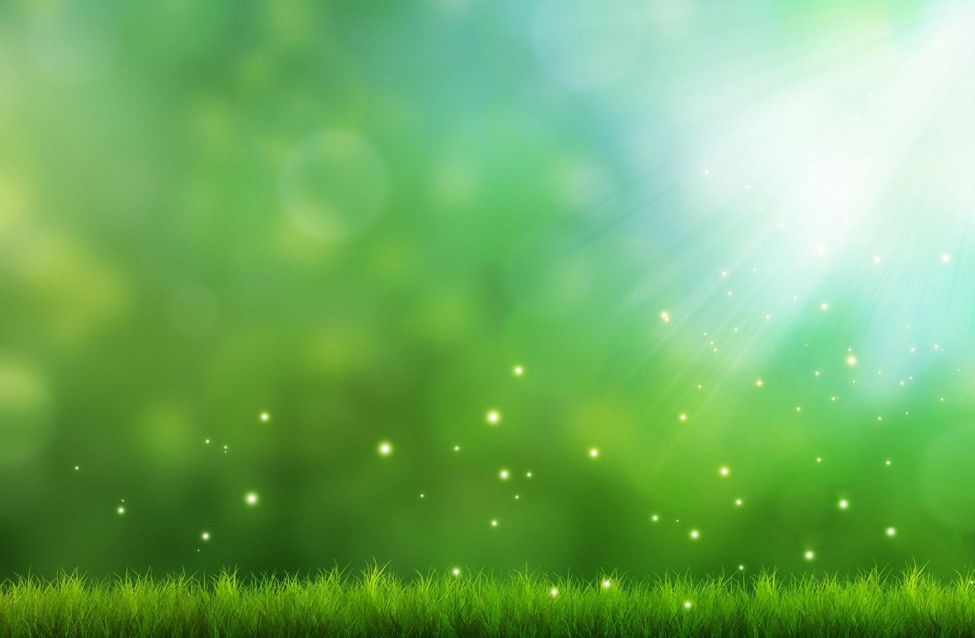 Green grass under the light with sparks