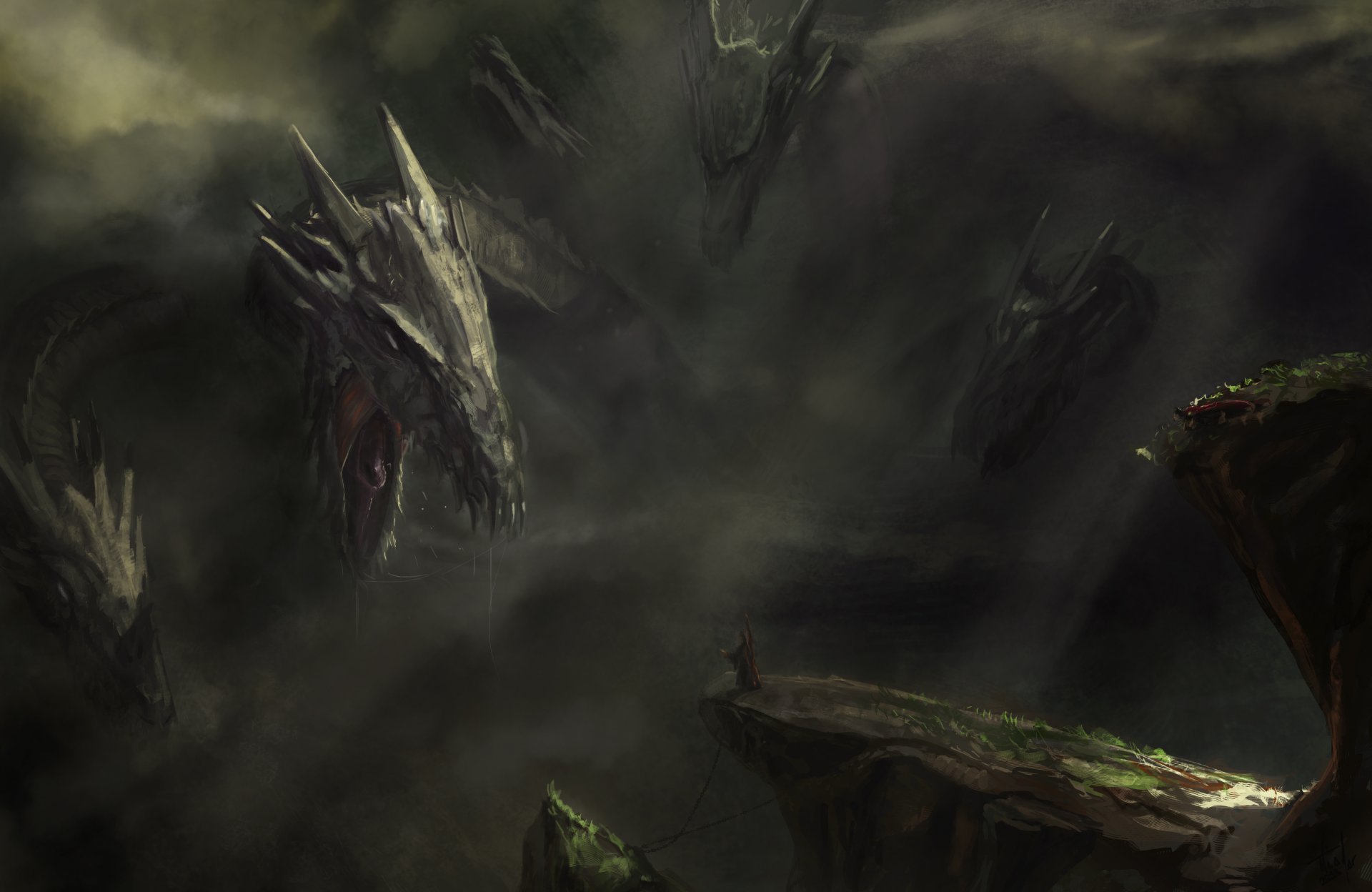 A magician tying a hydra from the abyss