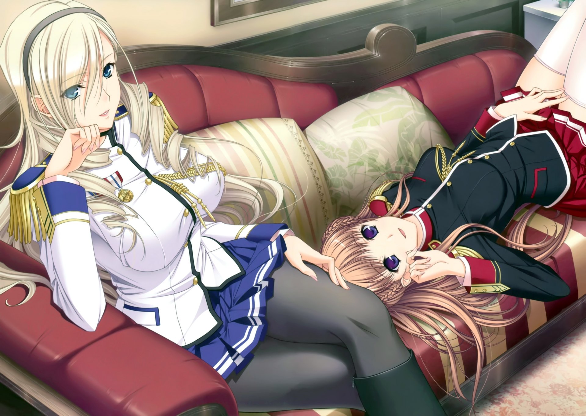 Image tags:art, komori kei, walkure romanze, celia cumani aintree, noel marres ascot, girls, room, sofa, form, pillow