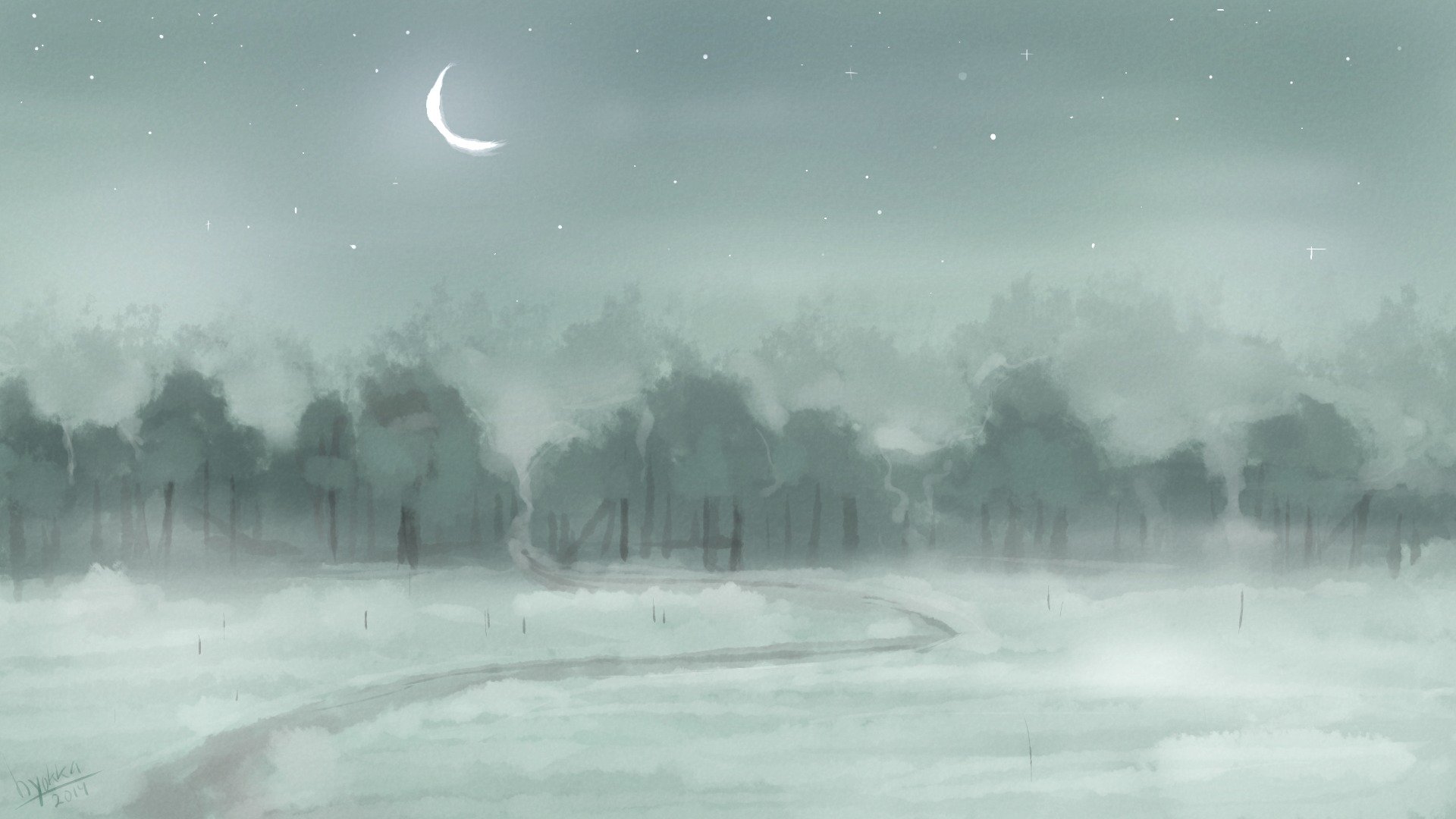 A lonely moon in a foggy night
