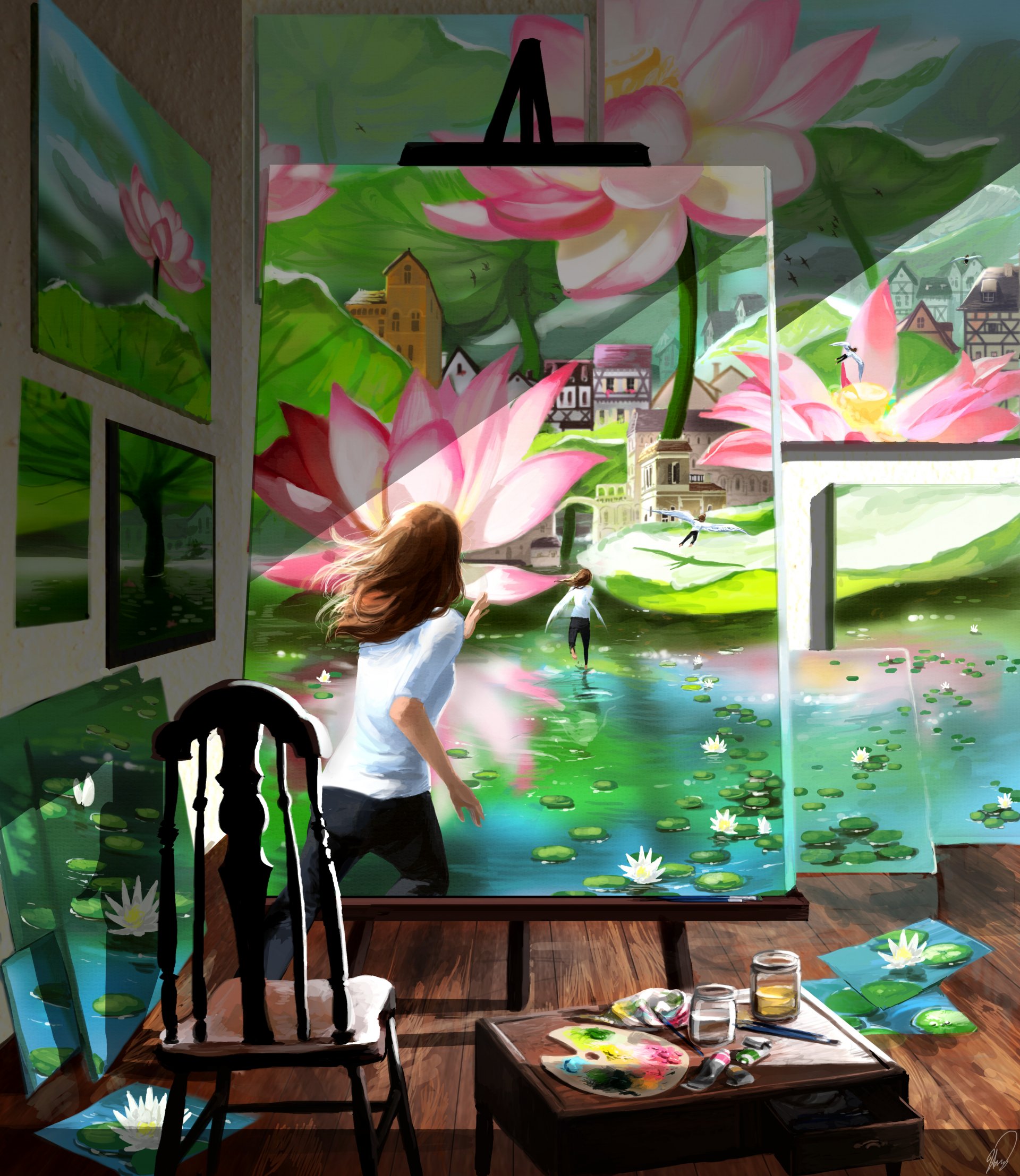 The girl in the picture with a lotus flower