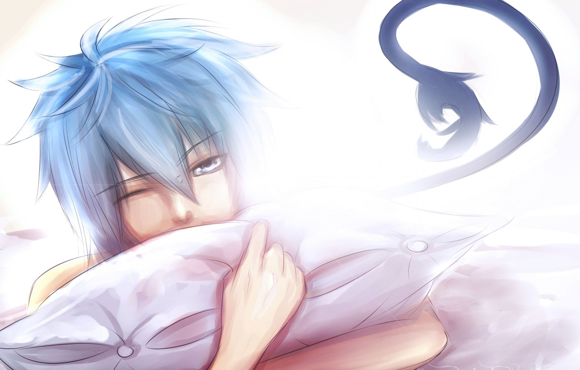 Image tags:art, pollypwnz, guy, okumura rin, view, winks, tail, demon, pillow, ao no exorcist, blue exorcist