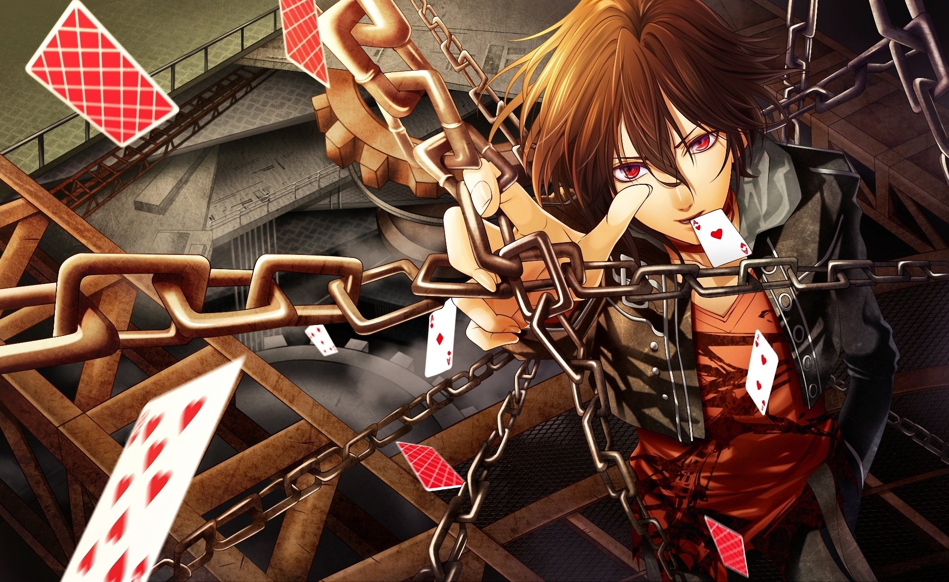 Image tags:art, srsn, amnesia, shin, guy, cards, chains, red eyes, surrealism