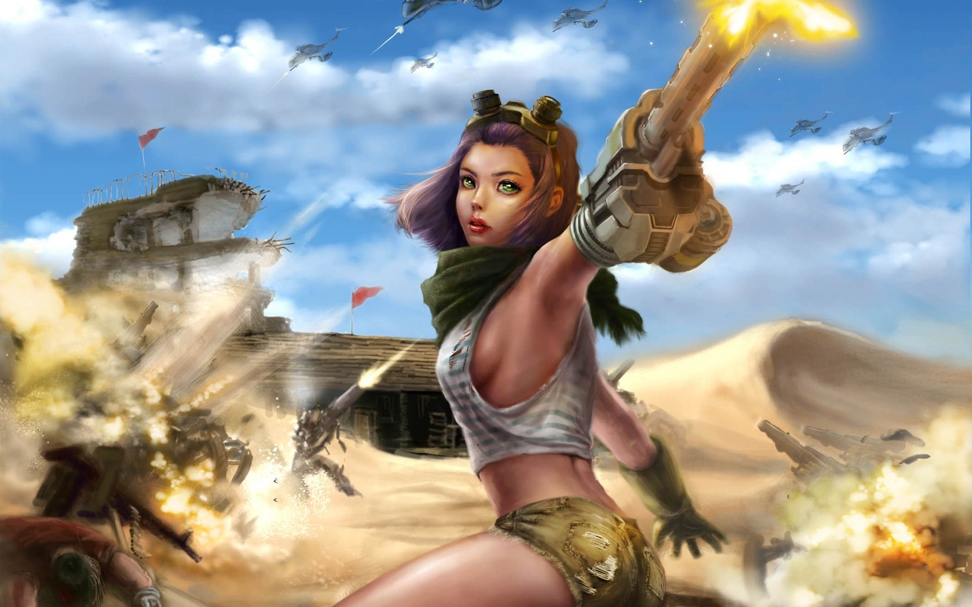 A girl with a gun in the dunes
