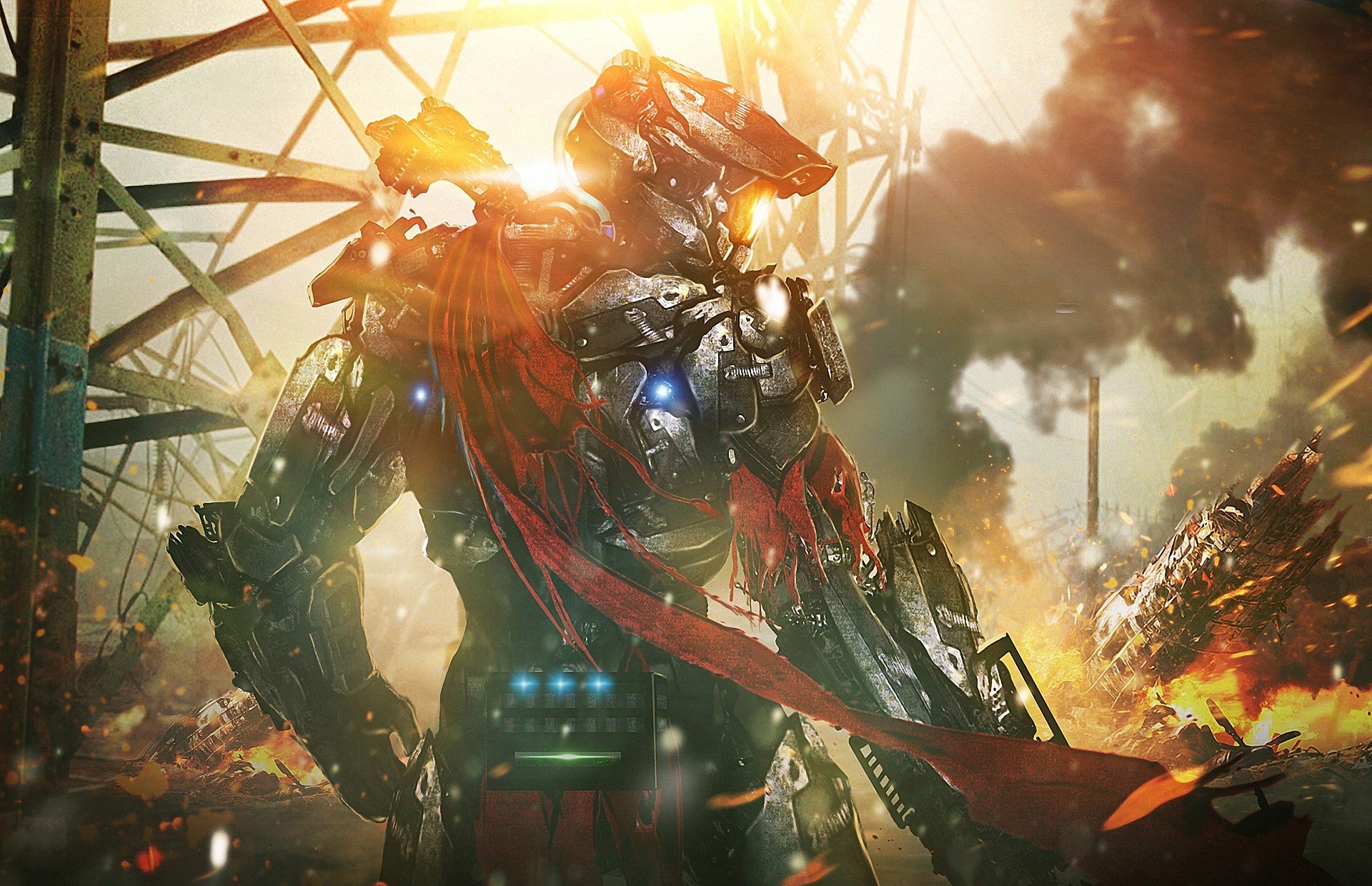 Metal robot warrior with a cape