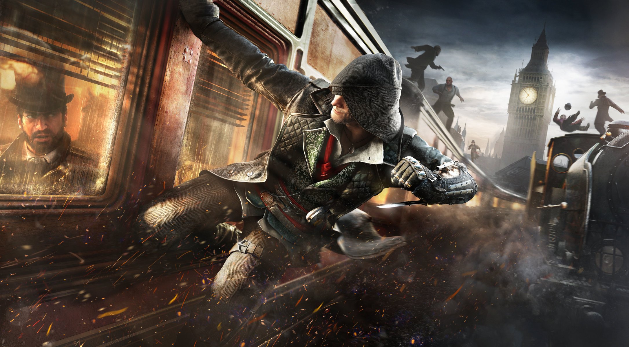 Image tags:assassin's creed: syndicate, assassins, killer, attack, train, speed, blade, hood, sky, coat