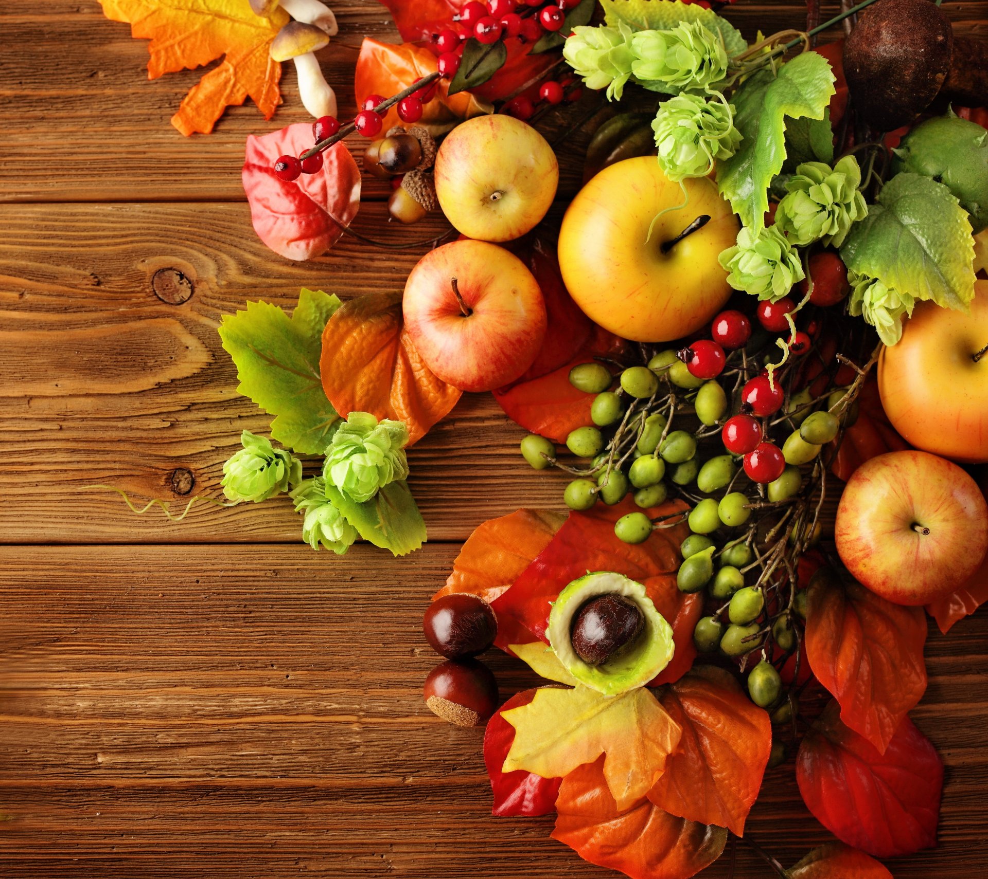 Fruit fantasy with apples and mushrooms