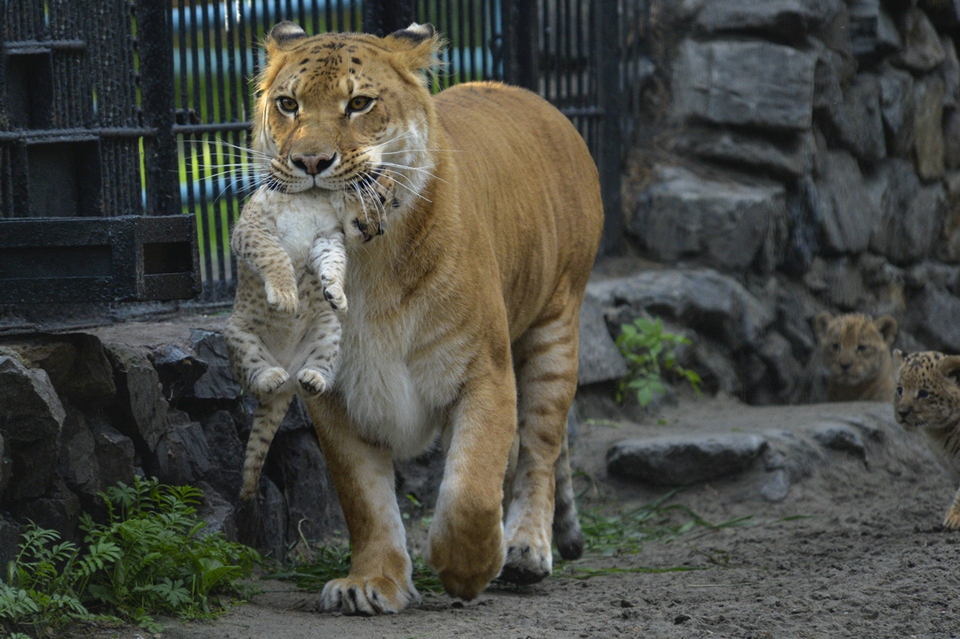Mother tigress carries a cub
