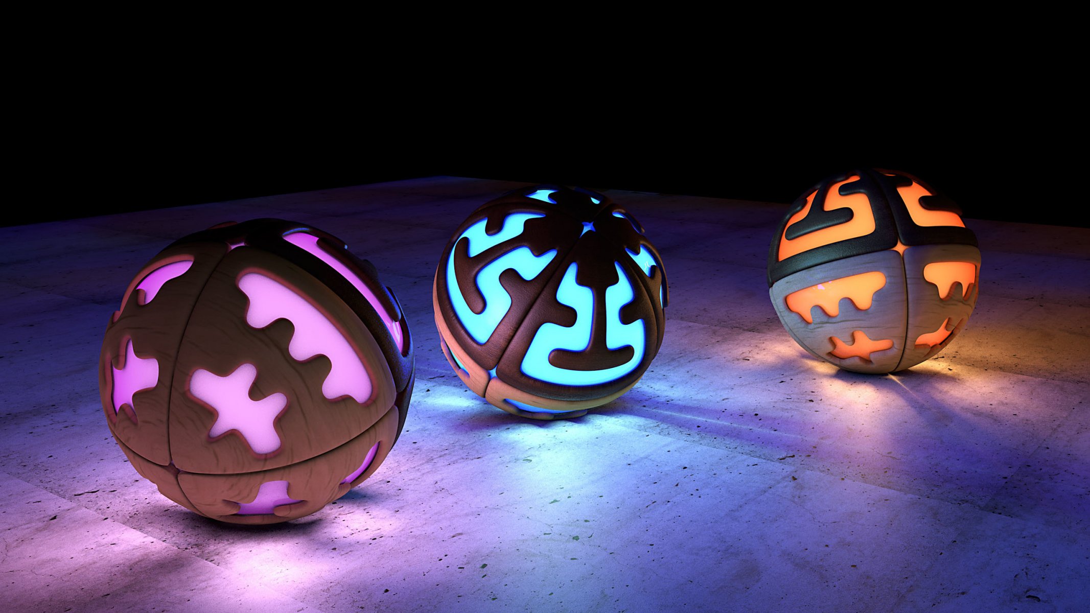 Three balls with a glow inside
