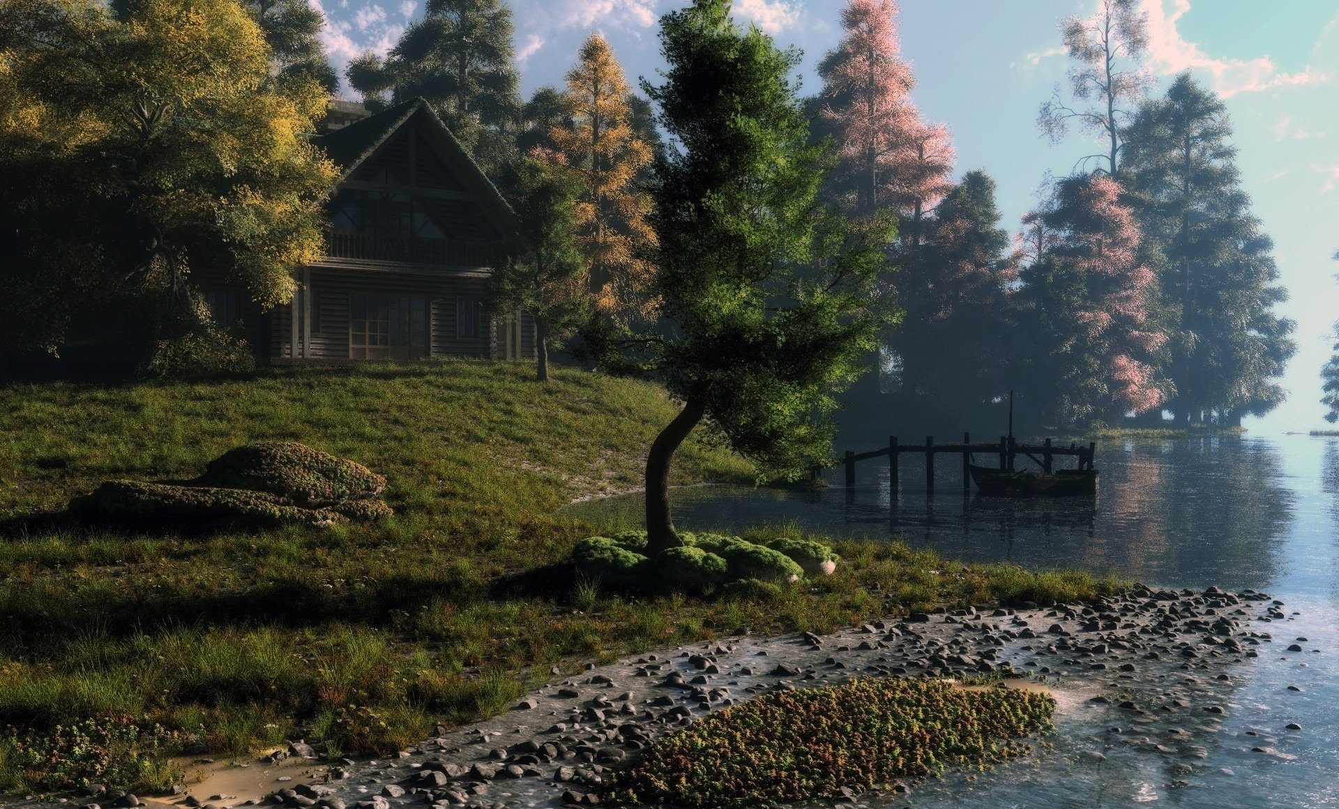 Beautiful landscapes with a house by the sea
