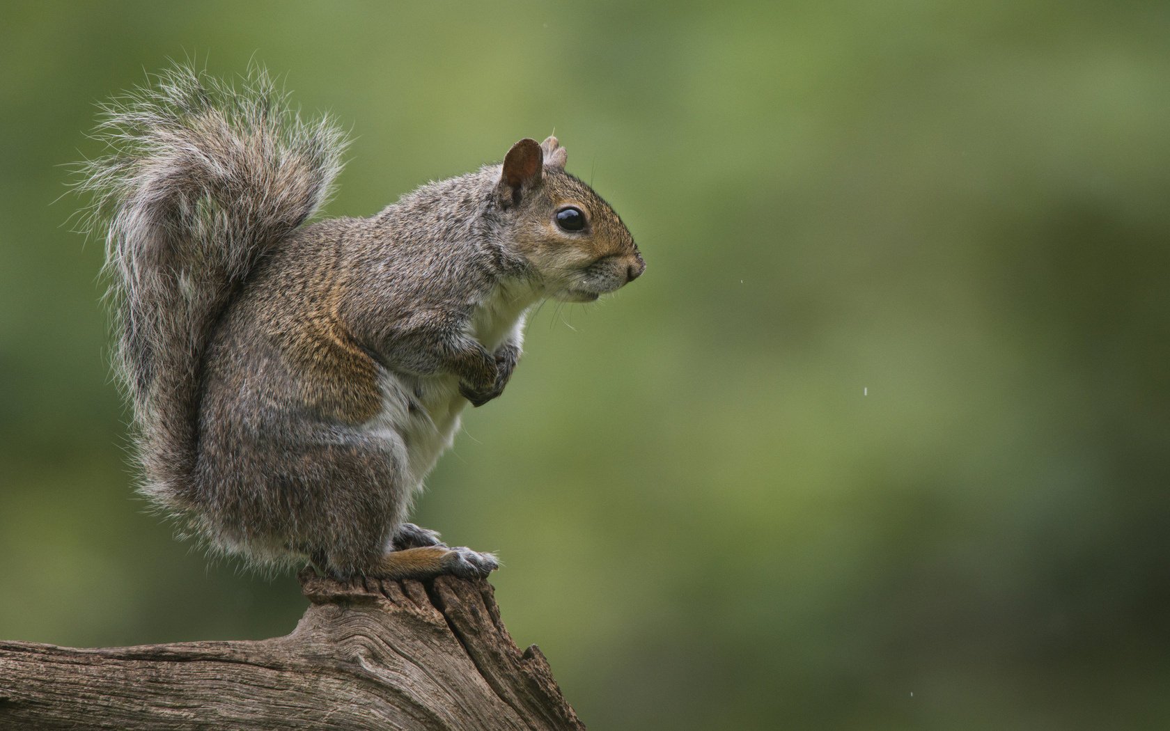 Beautiful squirrel in the forest on a stump