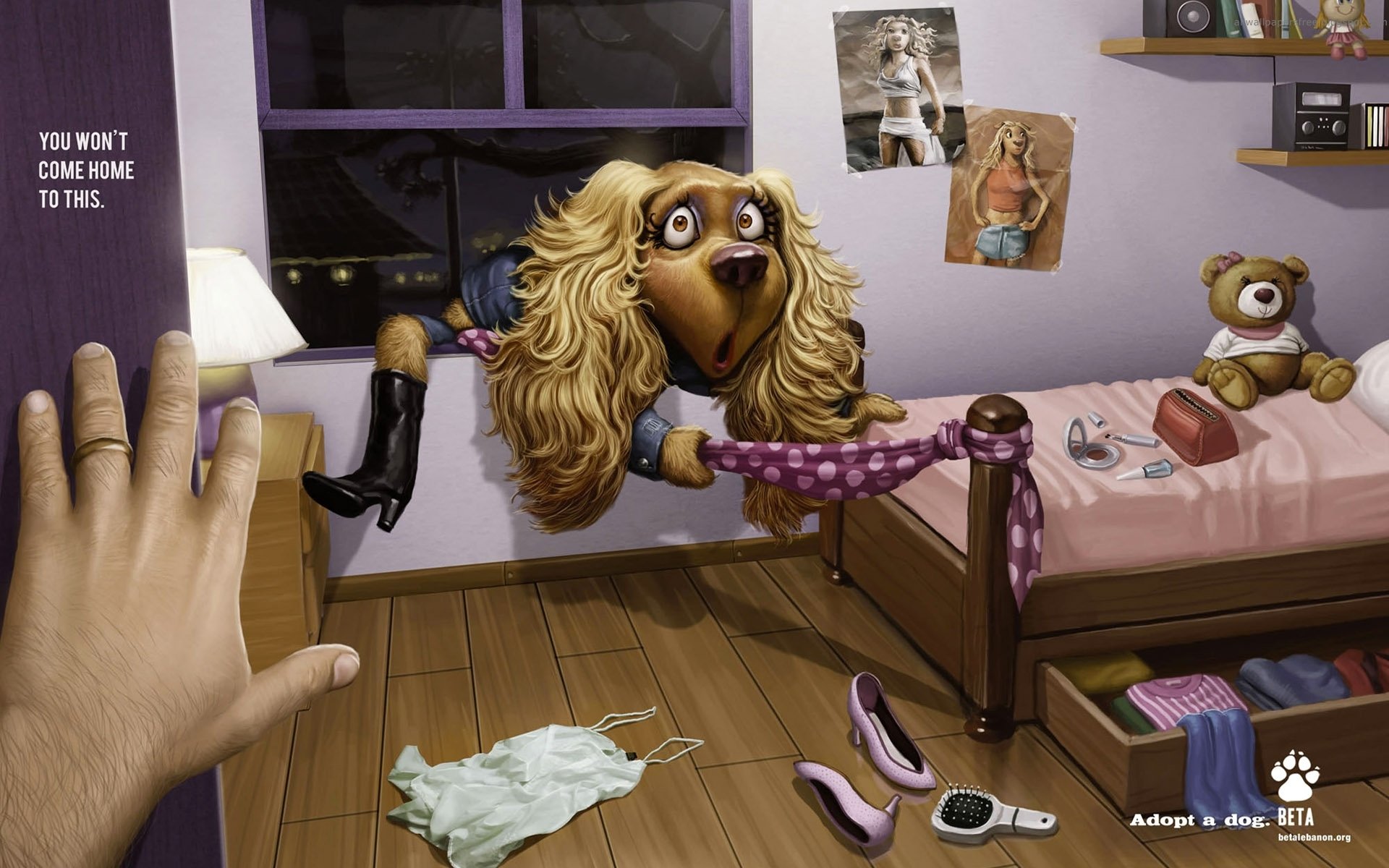The dog's escape through the window. Burned down