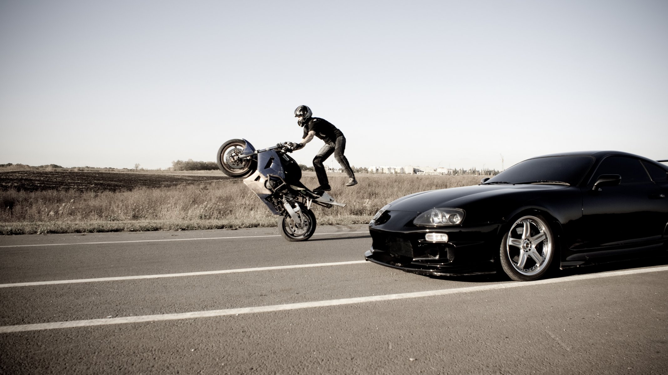 TOYOTA AND A STUNTMAN ON A MOTORCYCLE RIDING