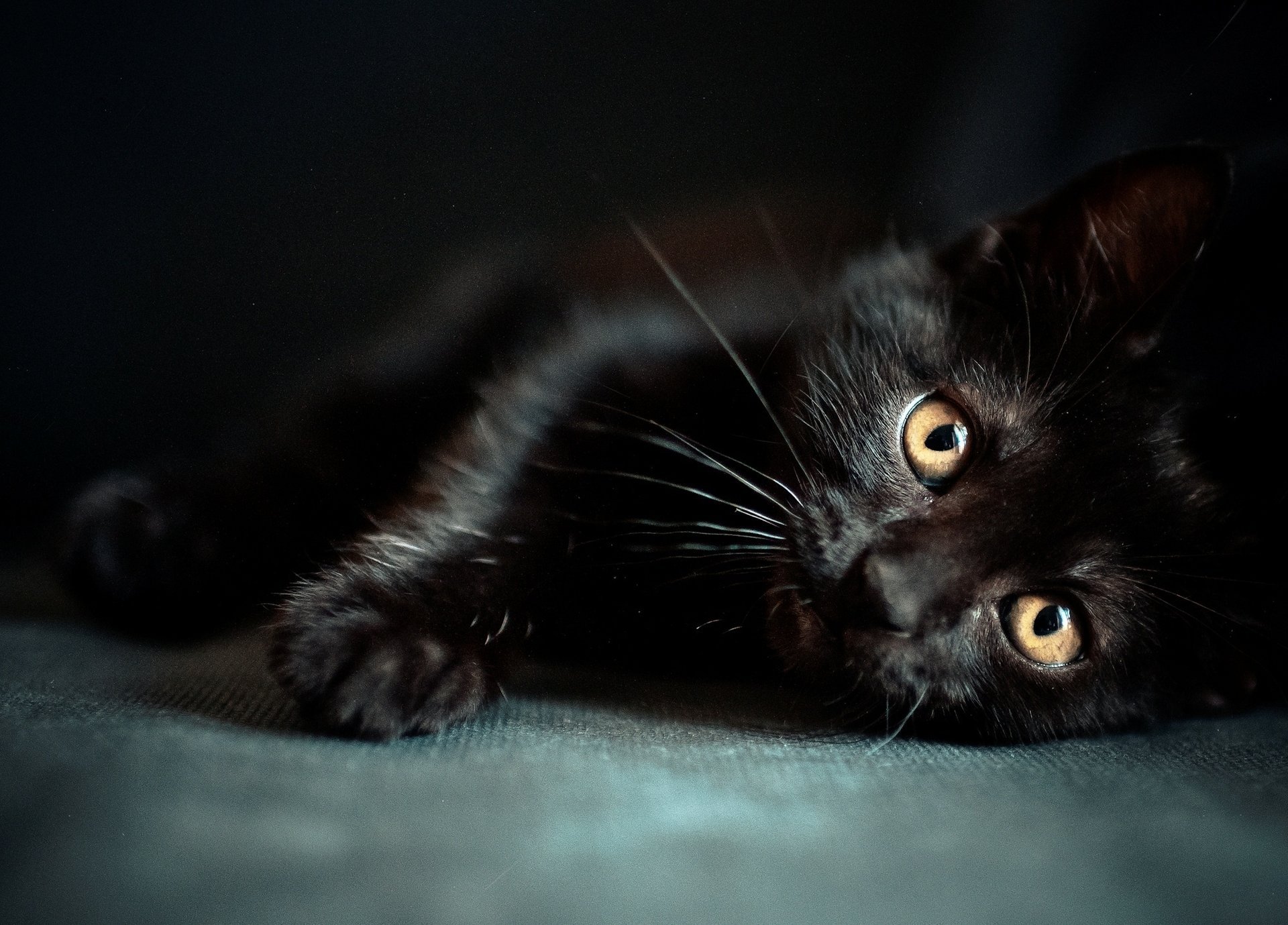 Black cat with yellow eyes on a black background1920 x 1212, 169 kB