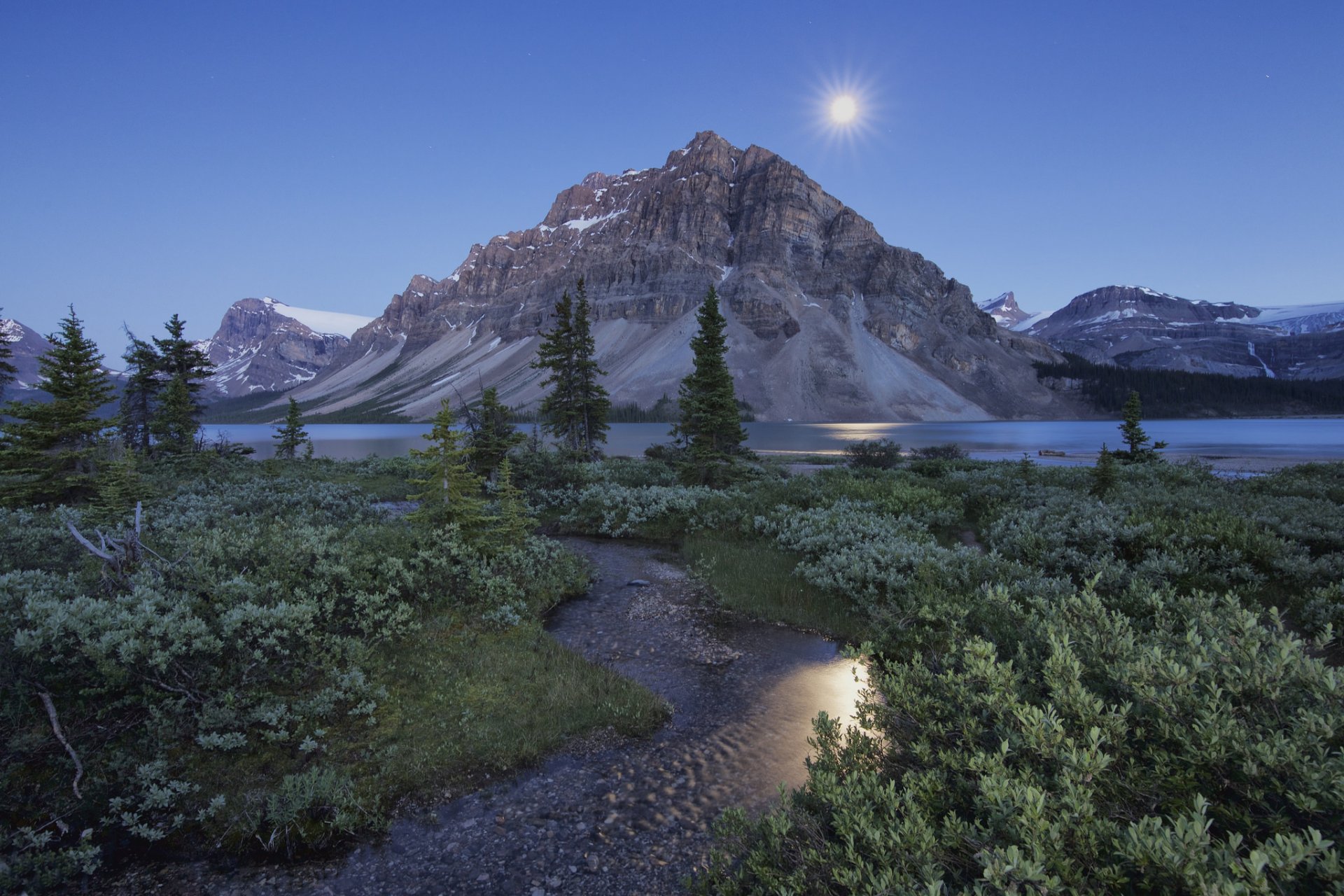 Image tags:bow lake, crowfoot mountain, banff national park, canadian rockies, alberta, canada, banff, albert, mount crowfoot, mountain, lake, creek