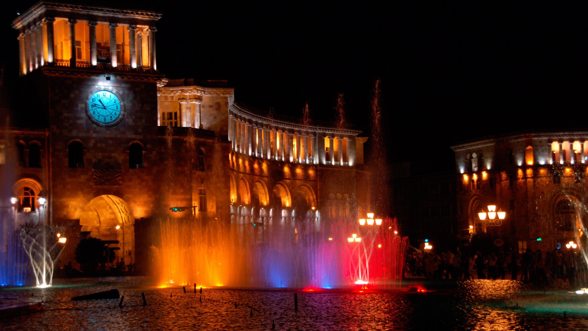 Bright fountains of evening Armenia