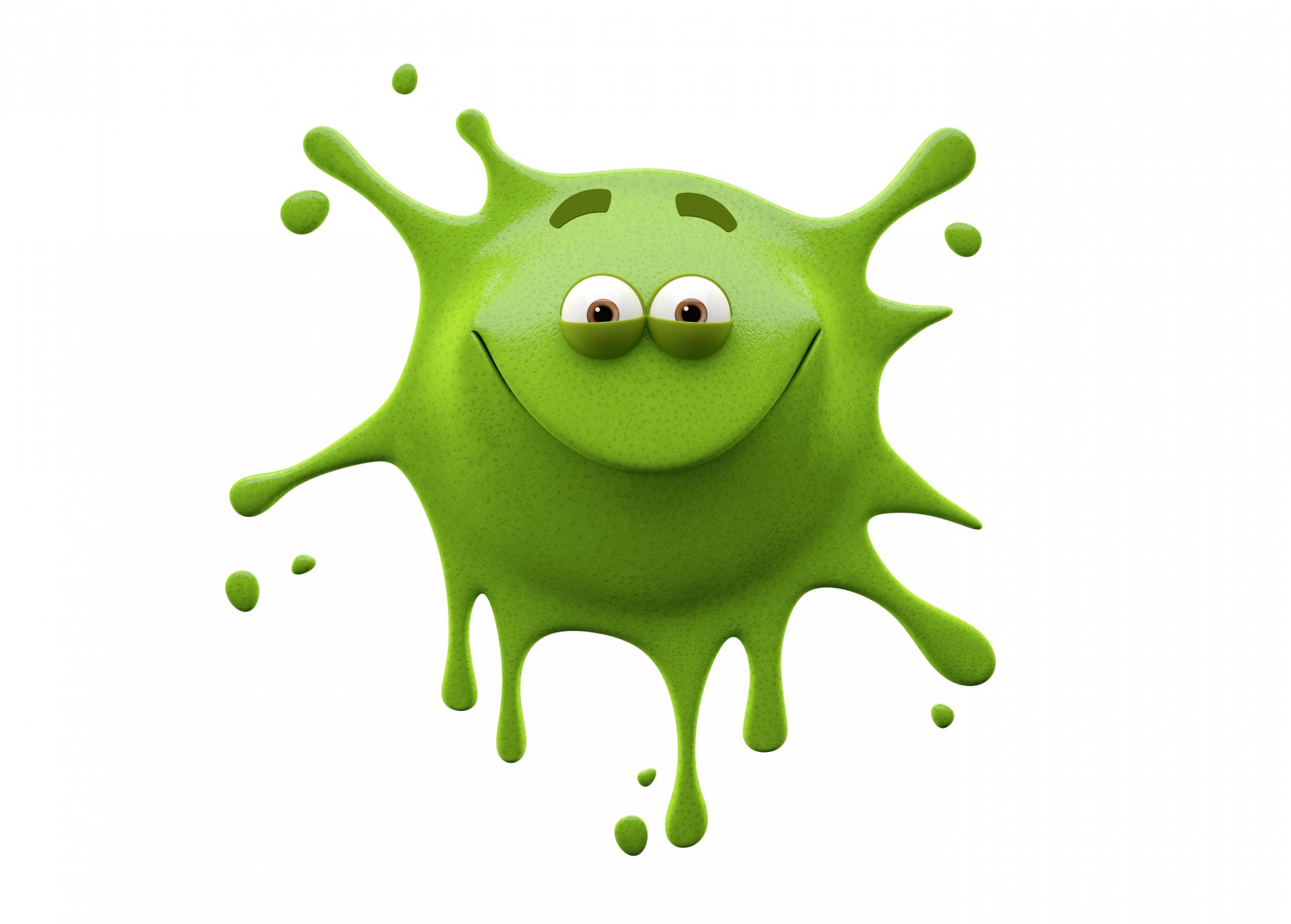 A green blob with graduation eyes