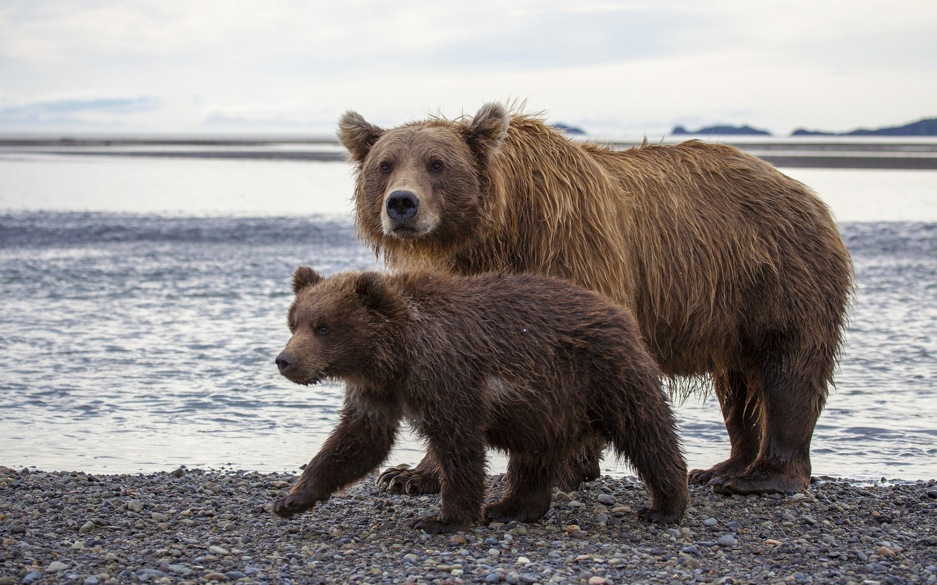 Brown bears at a lake in Alaska