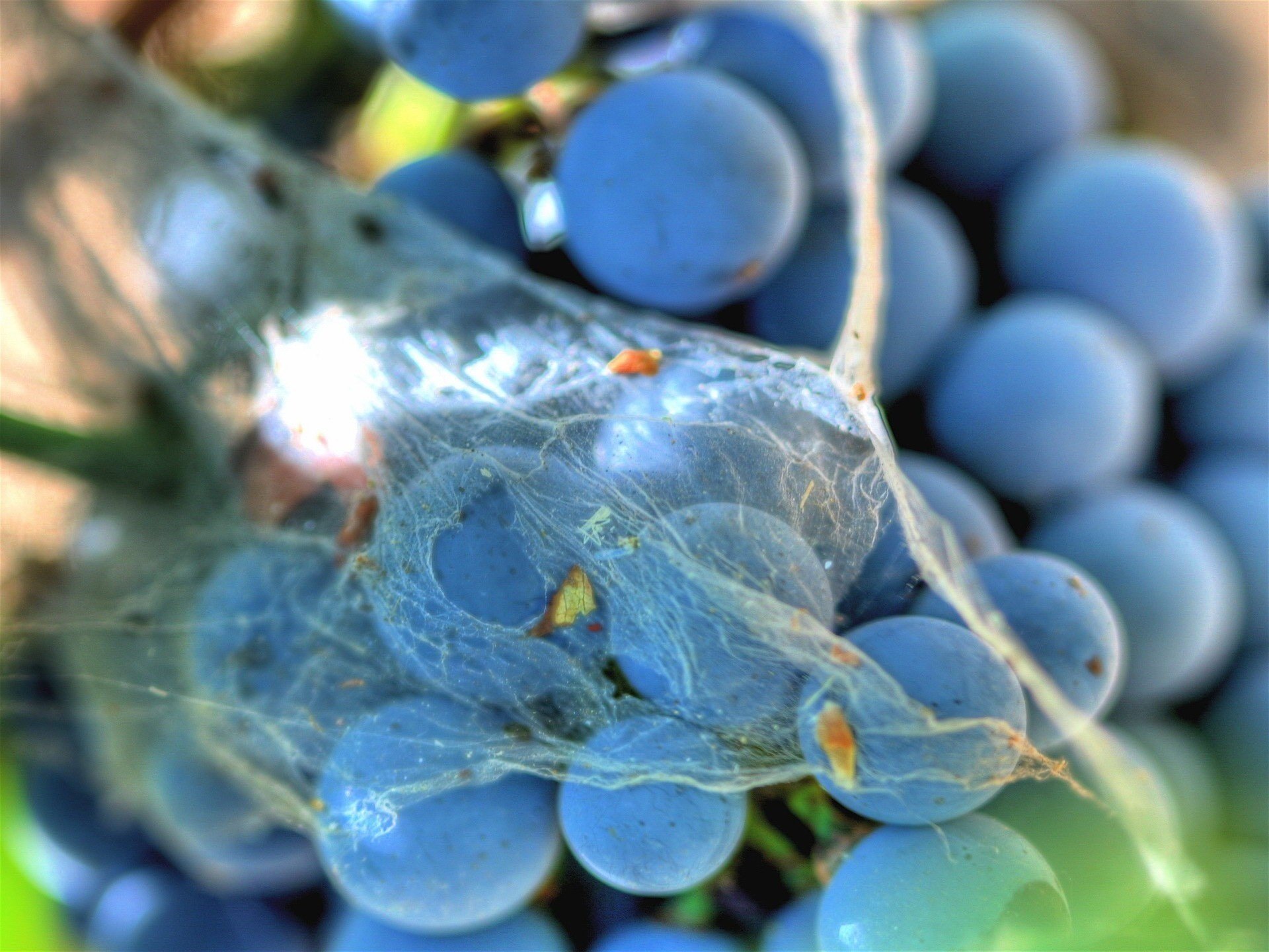 Bunches of dark grapes in the web
