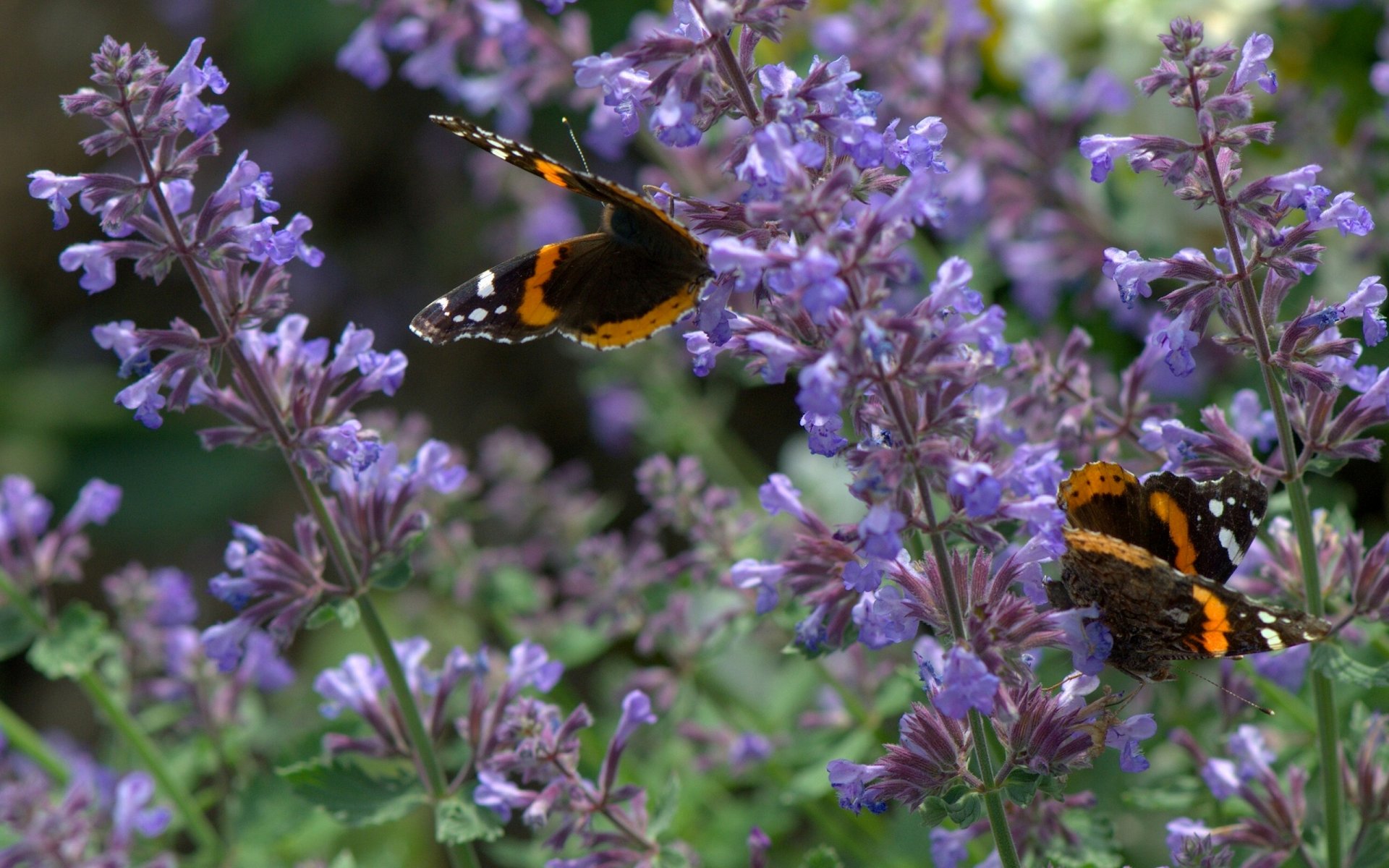 Admiral butterflies on lavender flowers