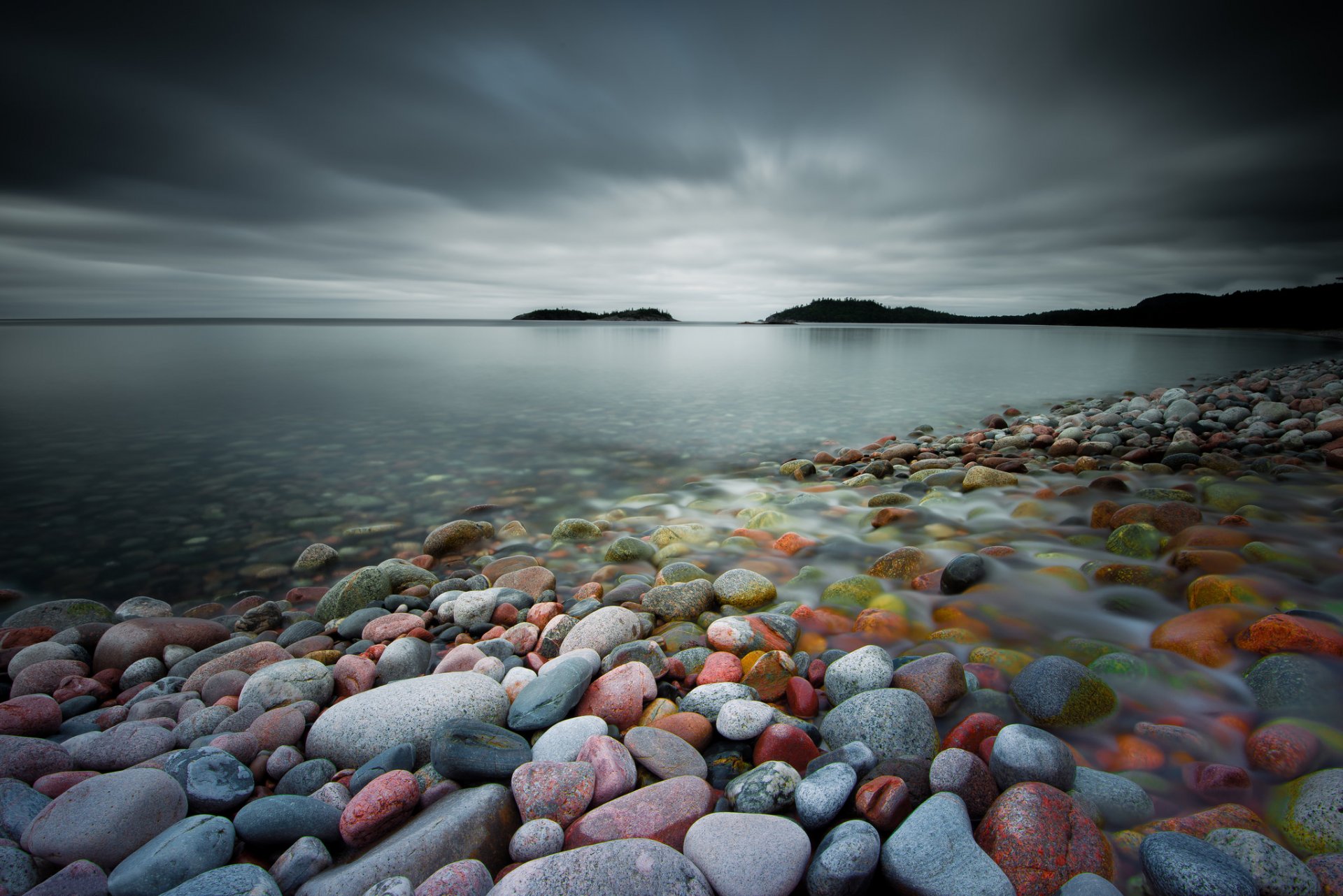 Gloomy sky and bright shore
