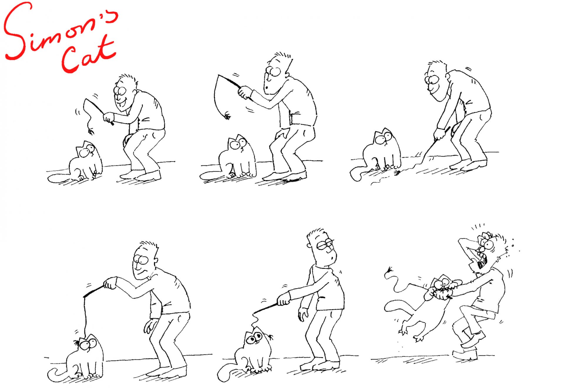 Simon's white cat plays with a string and then bites the owner's hand