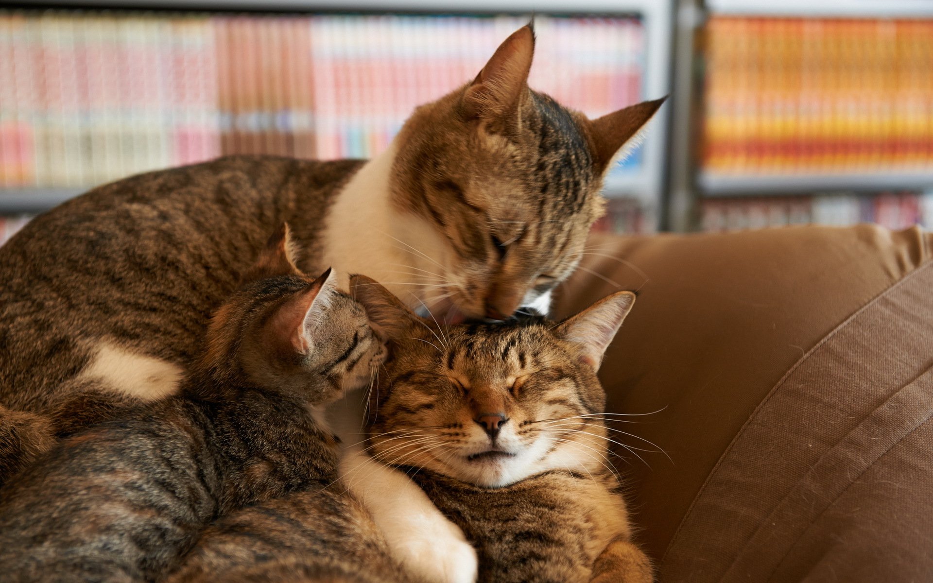 cats cat five collars white black red striped spotted sitting together eyes mustache1920 x 1200, 255 kB