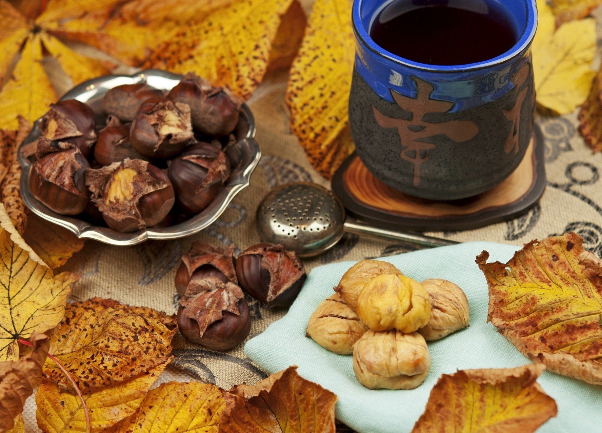 Autumn still life with chestnut tea
